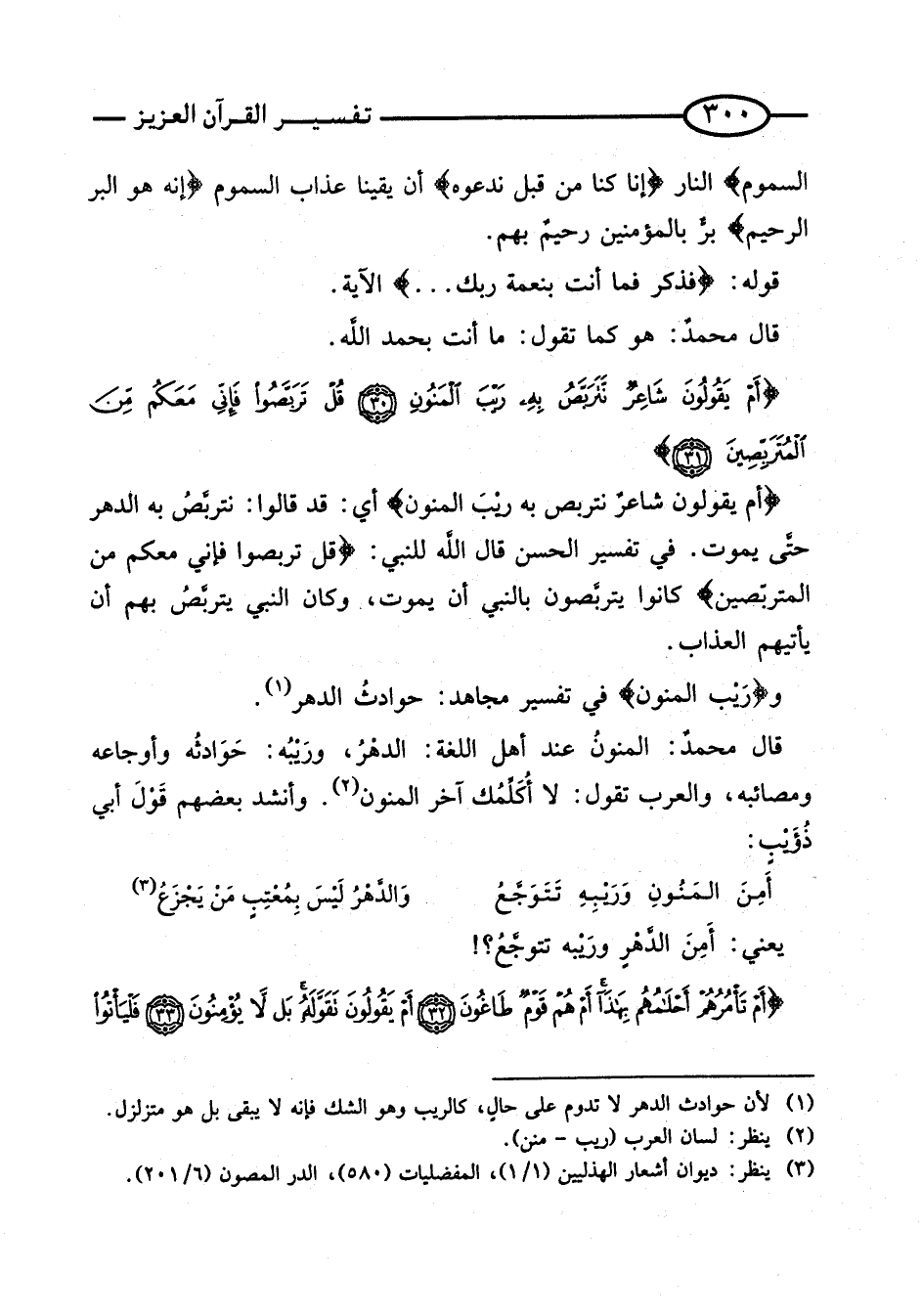 و {ريب الْمنون} فِي تَفْسِير مُجَاهِد: حوادثُ الدَّهْر.