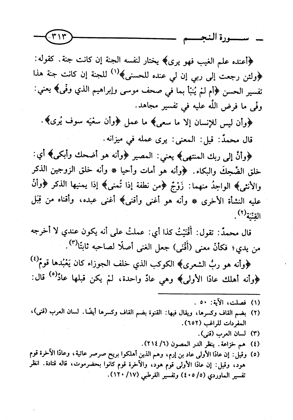 {أَعِنْدَهُ عِلْمُ الْغَيْبِ فَهُوَ يَرَى} يخْتَار لنَفسِهِ الْجنَّة إِن كَانَت جنَّة. كَقَوْلِه: {وَلَئِنْ رُجِعْتُ إِلَى رَبِّي إِنَّ لِي عِنْدَهُ لَلْحُسْنَى} للجنة إِن كَانَت جنَّة هَذَا تَفْسِير الْحسن {أَمْ لَمْ يُنَبَّأْ بِمَا فِي صحف مُوسَى}