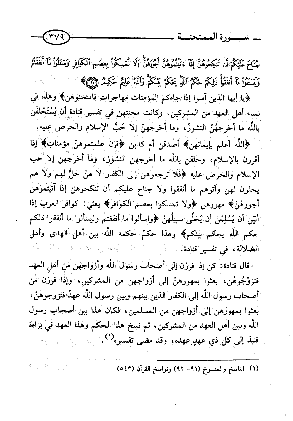 قَالَ قَتَادَة: كن إِذا فررْن إِلَى أَصْحَاب رَسُول الله وأزواجهن من أهلِ الْعَهْد فتزوّجُوهُن، بعثوا بمهورهنّ إِلَى أَزوَاجهنَّ من الْمُشْركين، وَإِذا فررْن من أَصْحَاب رَسُول الله إِلَى الْكفَّار الَّذين بَينهم وَبَين رَسُول الله عهدٌ فتزوجوهنّ، بعثوا بمهورهن إِلَى أَزوَاجهنَّ من الْمُسلمين، فَكَانَ هَذَا بَين أَصْحَاب رَسُول الله وَبَين أهل الْعَهْد من الْمُشْركين، ثمَّ نسخ هَذَا الحكم وَهَذَا الْعَهْد فِي بَرَاءَة فنبذ إِلَى كل ذِي عهدٍ عَهده، وَقد مضى تَفْسِيره.