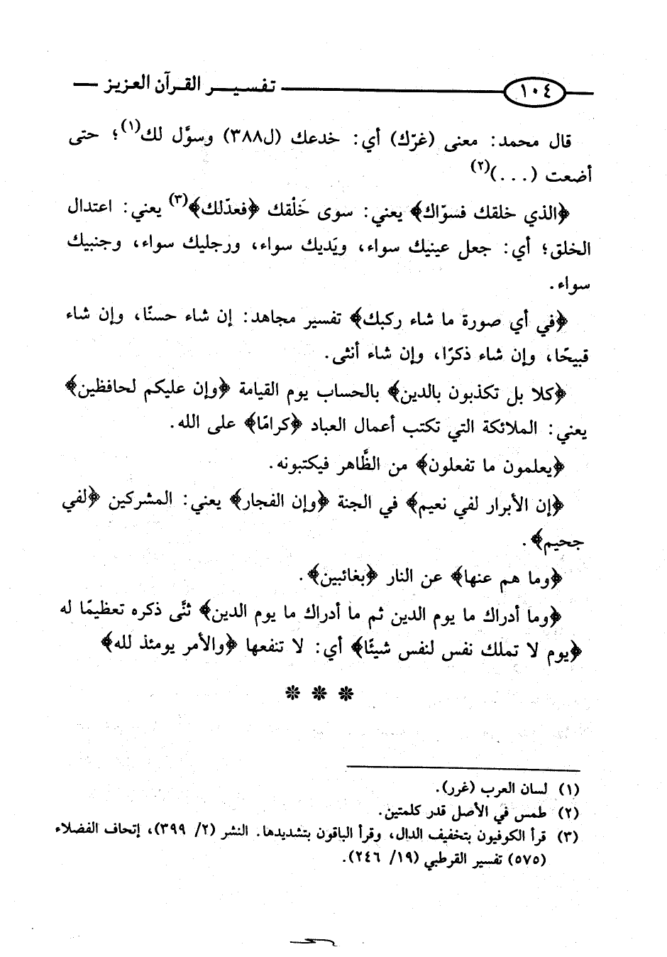 قَالَ مُحَمَّدٌ: مَعْنَى (غَرَّكَ) أَيْ: خدعك (ل 388) وسول لَك، حَتَّى أضعت