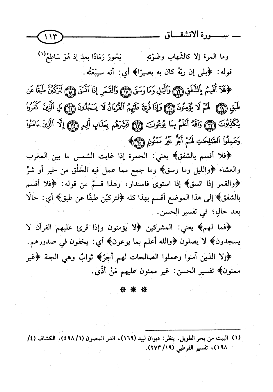 قَوْلُهُ: {بَلَى إِنَّ رَبَّهُ كَانَ بِهِ بَصيرًا} أَي: أَنه سيبعثه. تَفْسِير سور الانشقاق من آيَة 16 - 25