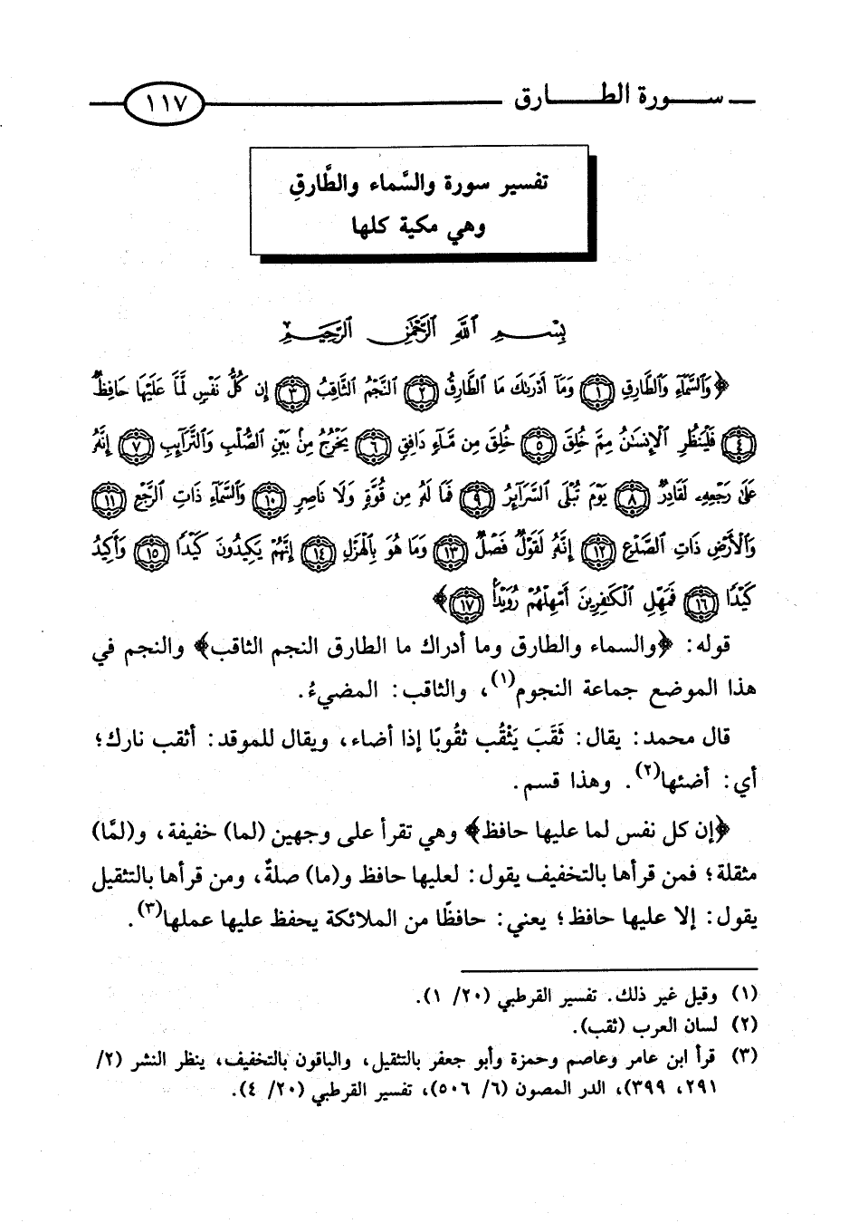 تَفْسِيرُ سُورَةِ وَالسَّمَاءِ وَالطَّارِقِ وَهِيَ مَكِّيَّة كلهَا