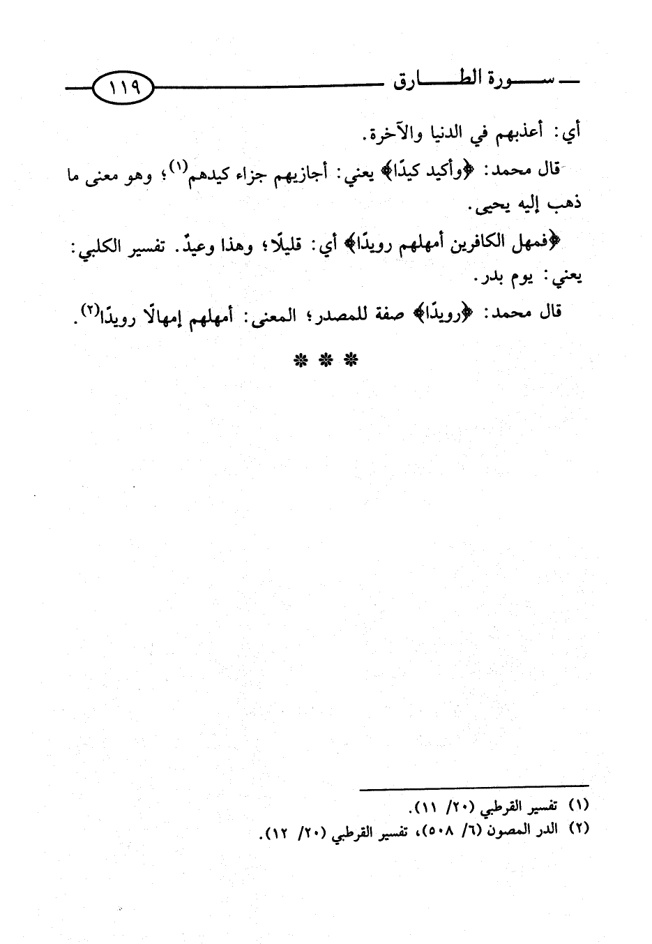 قَالَ مُحَمَّد: {رويدا} صِفَةٌ لِلْمَصْدَرِ، الْمَعْنَى: أَمْهِلْهِمْ إِمْهَالًا رُوَيْدًا.