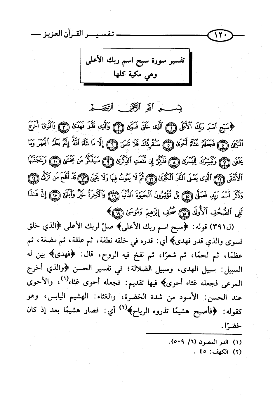 تَفْسِيرُ سُورَةِ سَبِّحِ اسْمَ رَبِّكَ الْأَعْلَى وَهِيَ مَكِّيَّةٌ كُلُّهَا