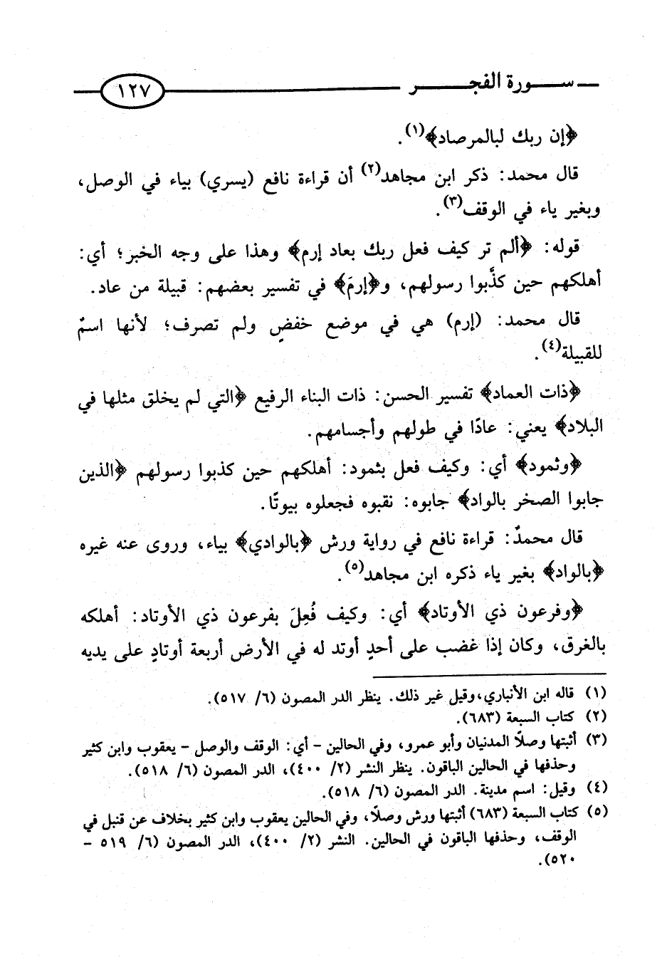 قَالَ محمدٌ: ذكر ابْنُ مُجَاهِد أَنَّ قِرَاءَةَ نَافِعٍ (يَسْرِي) بِيَاءِ فِي الْوَصْل، وَبِغير يَاء فِي الْوَقْف.
