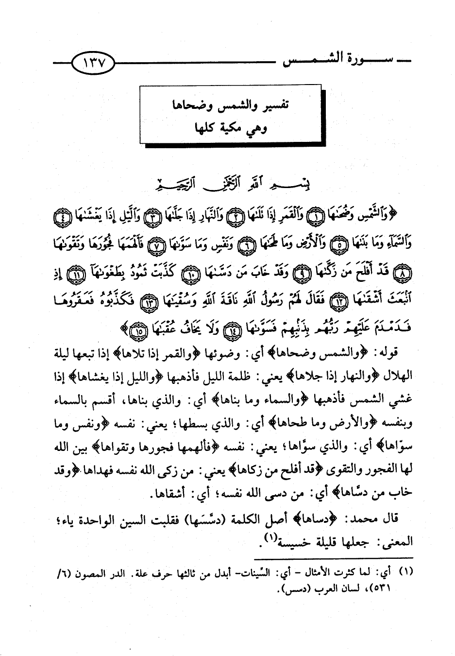 تَفْسِيرُ وَالشَّمْسِ وَضُحَاهَا وَهِيَ مَكِّيَّةٌ كلهَا