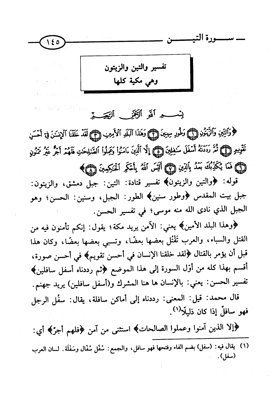 تَفْسِيرُ وَالتِّينِ وَالزَّيْتُونِ وَهِيَ مَكِّيَّةٌ كلهَا