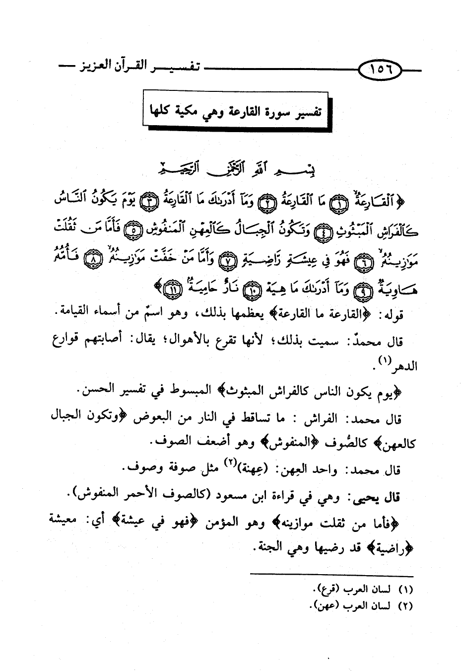 تَفْسِيرُ سُورَةِ الْقَارِعَةِ وَهِيَ مَكِّيَّةٌ كلهَا