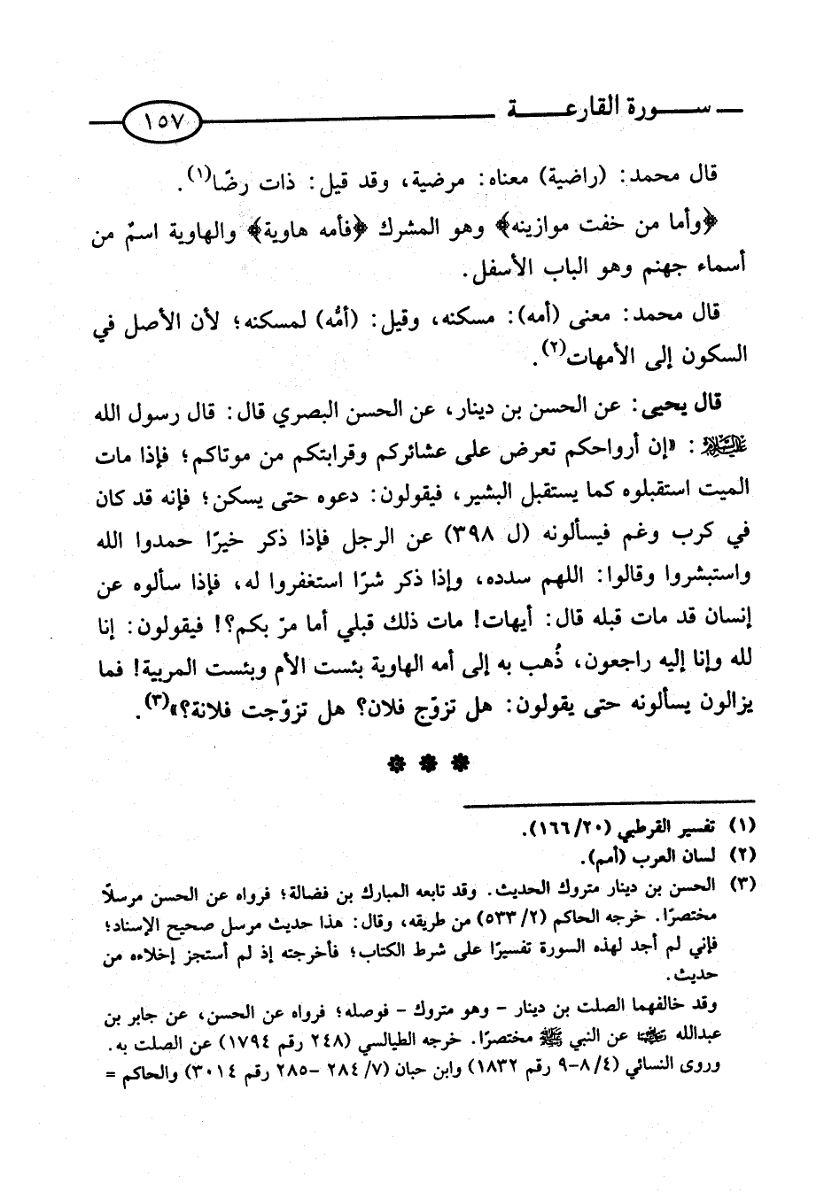 قَالَ يَحْيَى: عَنِ الْحَسَنُ بْنُ دِينَارٍ، عَنِ الْحَسَنِ الْبَصْرِيِّ قَالَ: قَالَ رَسُولُ اللَّهِ صَلَّى اللَّهُ عَلَيْهِ وَسَلَّمَ: ((أَن أَرْوَاحَكُمْ تُعْرَضُ عَلَى عَشَائِرِكُمْ وَقَرَابَتِكُمْ مِنْ مَوْتَاكُمْ؛ فَإِذَا مَاتَ الْمَيِّتُ اسْتَقْبَلُوهُ كَمَا يُسْتَقْبَلُ الْبَشِيرُ، فَيَقُولُونَ: دَعُوهُ حَتَّى يَسْكُنَ؛ فَإِنَّهُ قَدْ كَانَ فِي كَرْبٍ وَغَمٍّ فَيَسْأَلُونَهُ (ل 398) عَن الرجل فَإذْ ذَكَرَ خَيْرًا حَمِدُوا اللَّهَ وَاسْتَبْشَرُوا وَقَالُوا: اللَّهُمَّ سَدِّدْهُ، وَإِذَا ذَكَرَ شَرًّا اسْتَغْفَرُوا لَهُ، فَإِذَا سَأَلُوهُ عَنْ إِنْسَانٍ قَدْ مَاتَ قَبْلَهُ قَالَ: أَيْهَاتُ مَاتَ ذَلِكَ قَبْلِي أَمَا مَرَّ بِكُمْ؟ فَيَقُولُونَ: إِنَّا لِلَّهِ وَإِنَّا إِلَيْهِ رَاجِعُونَ، ذُهِبَ بِهِ إِلَى أُمِّهِ الْهَاوِيَةِ بِئْسَتِ الْأُمِّ وَبِئْسَتِ الْمُرَبِّيَةِ فَمَا يَزَالُونَ يَسْأَلُونَهُ حَتَّى يَقُولُونَ: هَلْ تَزَوَّجَ فُلانٌ؟ هَلْ تَزَوَّجَتْ فُلانَةٌ؟)).