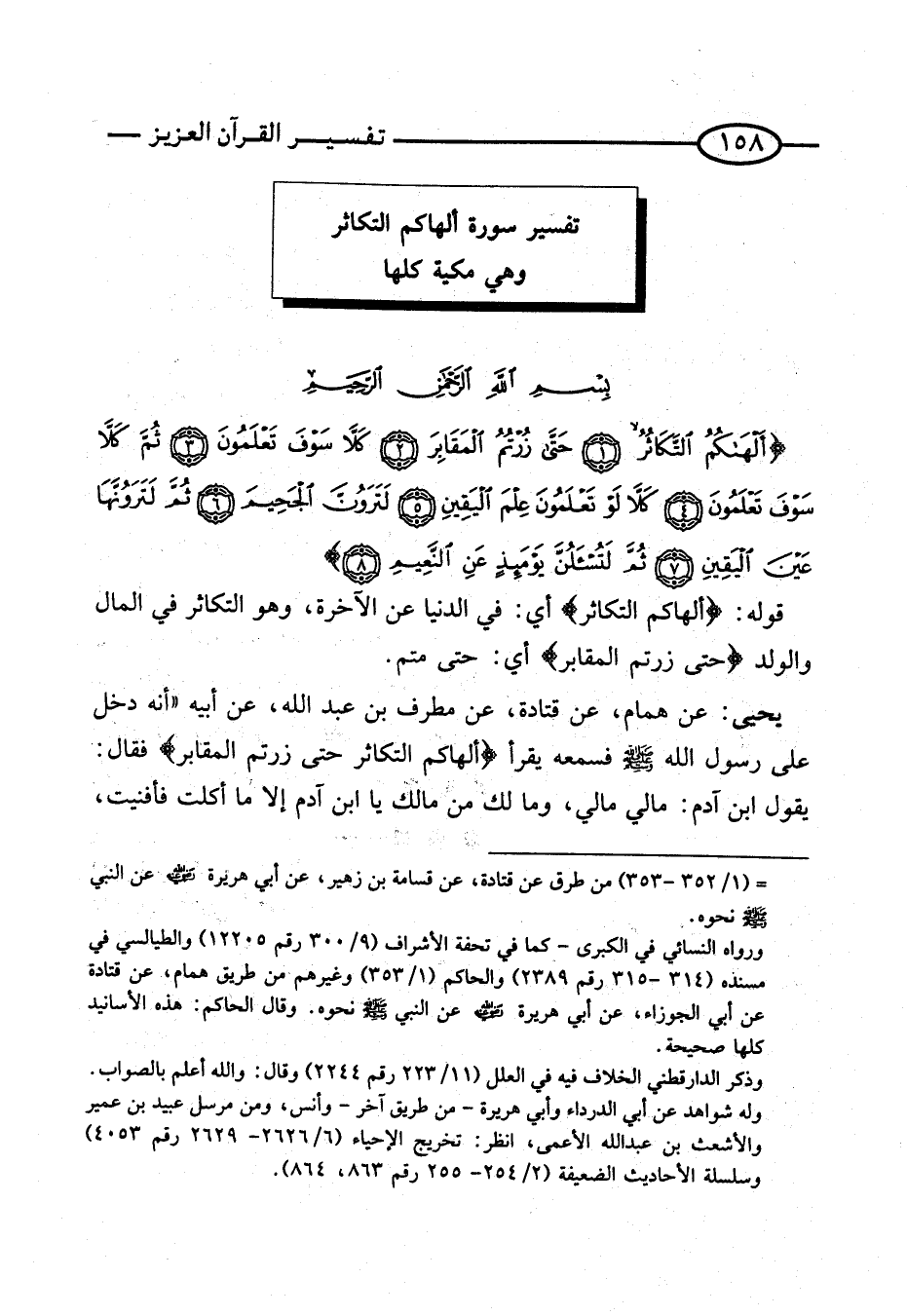 تَفْسِيرُ سُورَةِ أَلْهَاكُمُ التَّكَاثُرُ وَهِيَ مَكِّيَّة كلهَا
