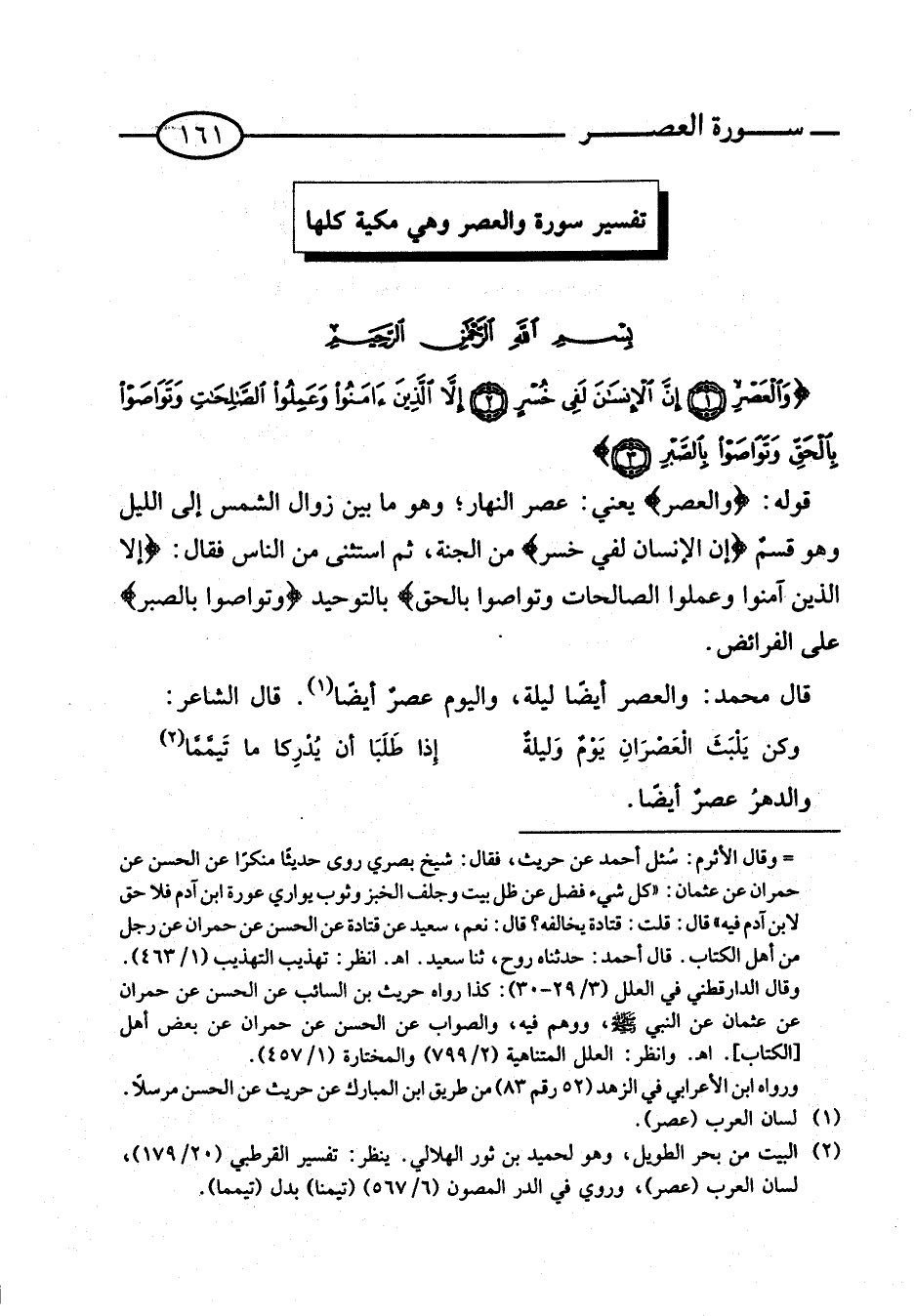 تَفْسِيرُ سُورَةِ وَالْعَصْرِ وَهِيَ مَكِّيَّةٌ كلهَا