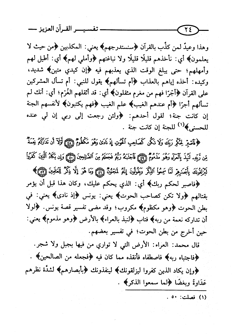 {فاصبرلحكم رَبك} أَيْ: الَّذِي يَحْكُمُ عَلَيْكَ، وَكَانَ هَذَا قبل أَن يُؤمر بقتالهم {وَلَا تكن كصاحب الْحُوت} يَعْنِي: يُونُس {إِذْ نَادَى} يَعْنِي: فِي بَطْنِ الْحُوتِ {وَهُوَ مكظوم} مَكْرُوبٌ؛ وَقَدْ مَضَى تَفْسِيرُ قِصَّةِ يُونُس.