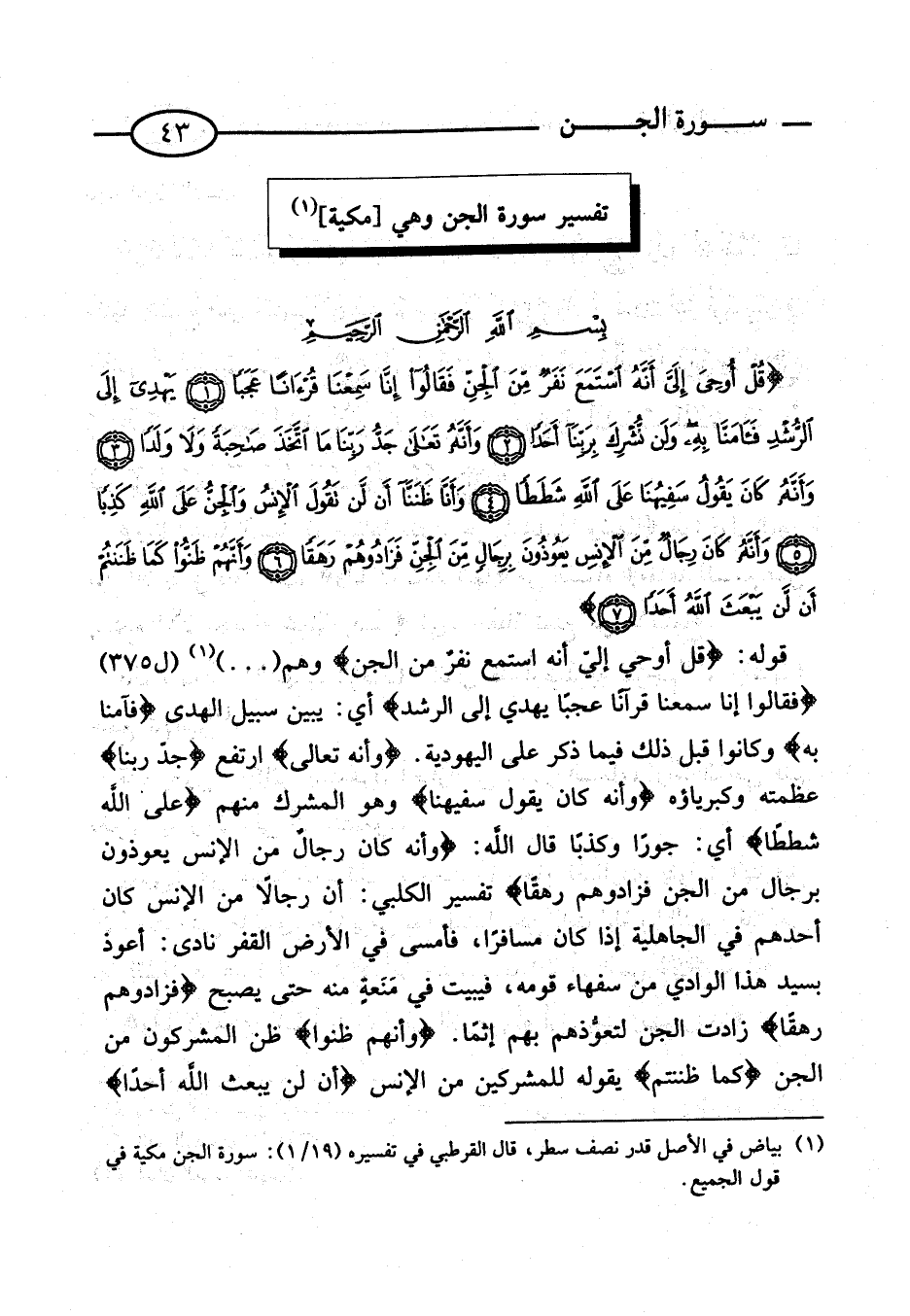 تَفْسِيرُ سُورَةِ الْجَنِّ وَهِيَ [مَكِّيَّةٌ]
