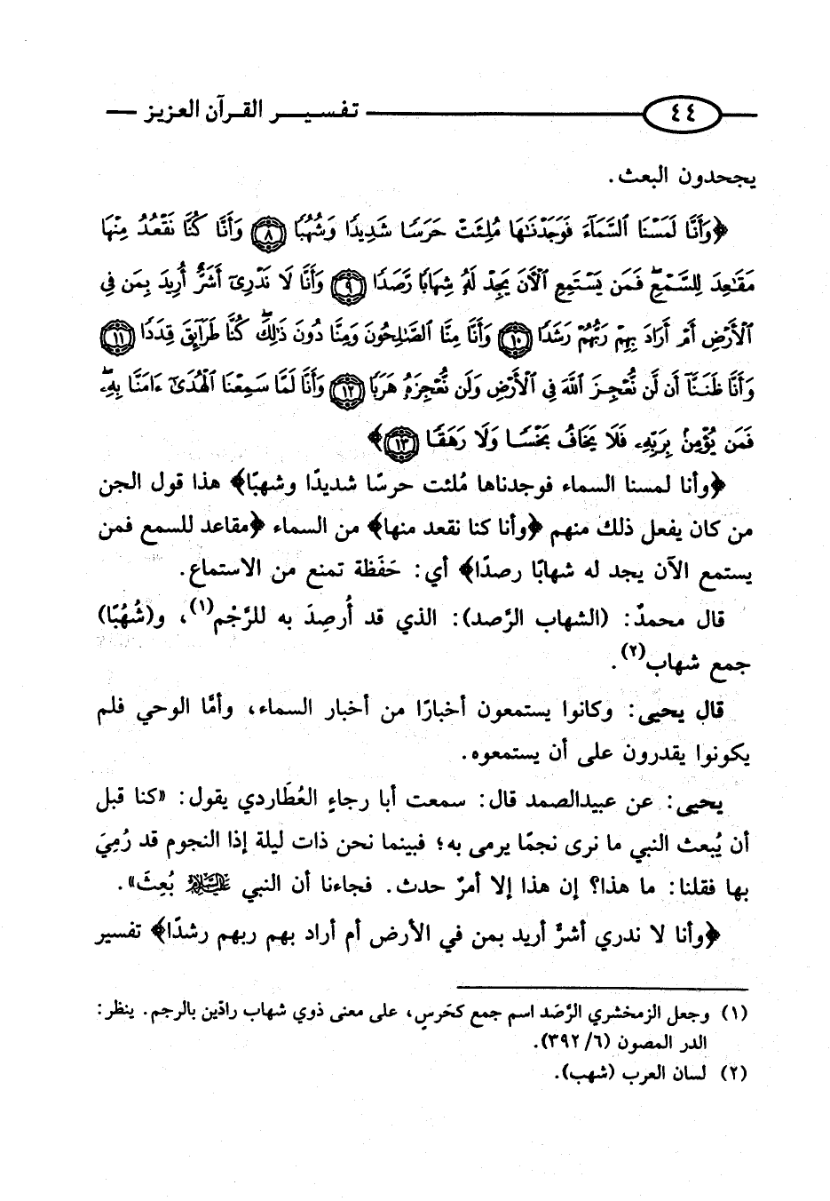 قَالَ محمدٌ: (الشهَاب الرَّصد): أَي: قد أُرصِدَ بِهِ للرَّجْم، و (شُهُبًا) جَمْعُ شِهَابٍ.