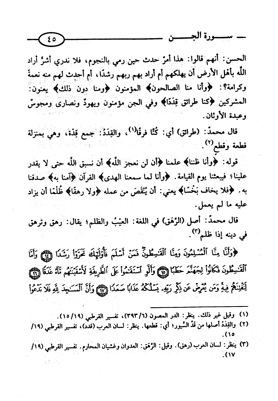 قَالَ محمدٌ: أَصْلُ (الرَّهَق) فِي اللُّغَةِ العيْبُ وَالظُّلْمُ؛ يُقَالُ: رَهَقَ وَتَرَهَّقَ فِي دِينِهِ إِذا ظلم. تَفْسِير سُورَة الْجِنّ من آيَة (14 - 17)