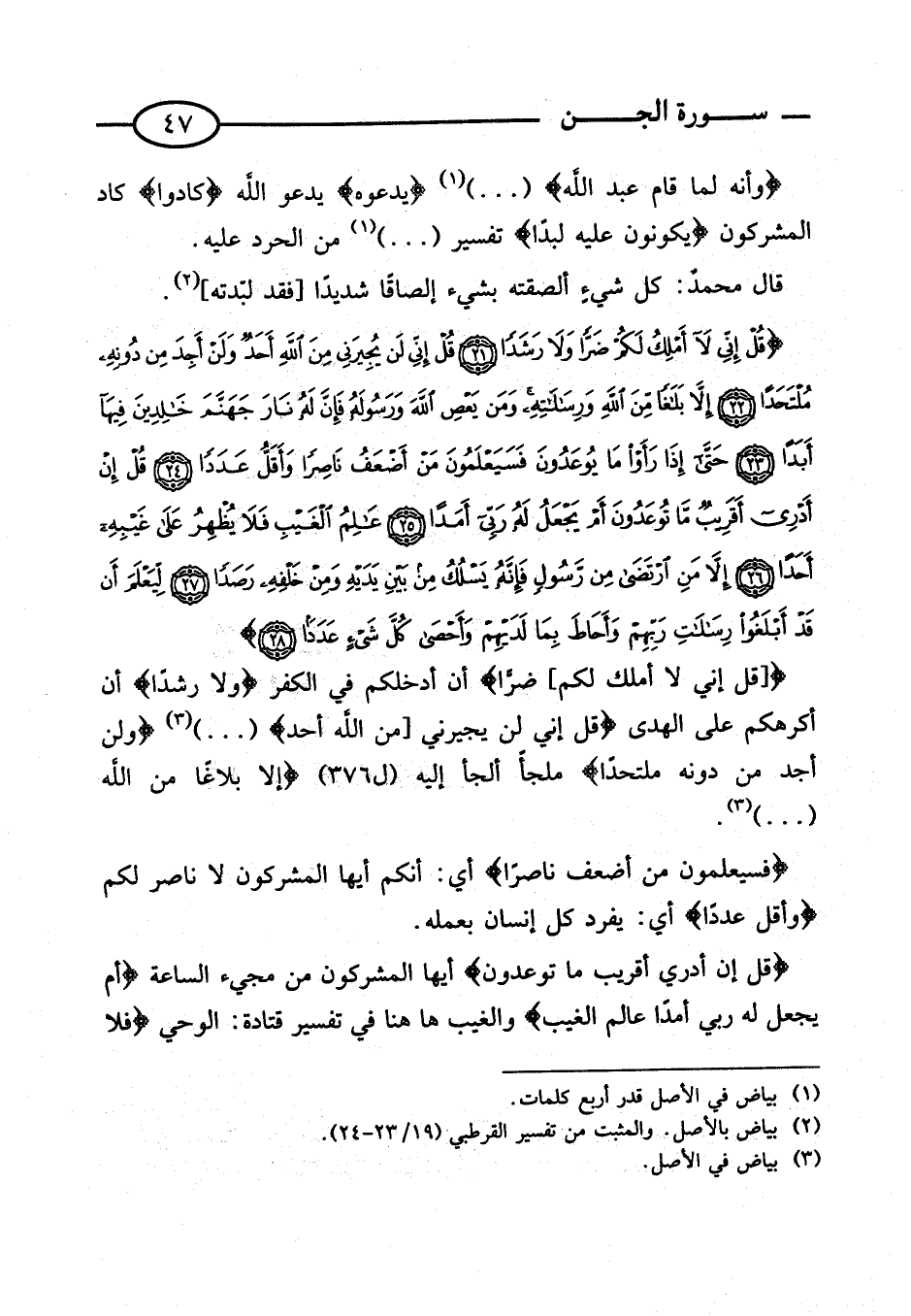 قَالَ محمدٌ: كُلُّ شيءٍ أَلْصَقْتَهُ بشيءٍ إلصاقًا شَدِيدا [فقد لبّدته]. تَفْسِير سُورَة الْجِنّ من آيَة (21 - 28)