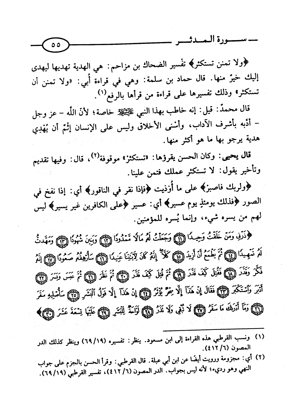 قَالَ يَحْيَى: وَكَانَ الْحَسَنُ يَقْرَؤُهَا: ((تستكثرْ)) مَوْقُوفَةٌ، قَالَ: وَفِيهَا تَقْدِيمٌ وَتَأْخِيرٌ يَقُولُ: لَا تَسْتَكْثِرْ عَمَلَكَ فَتَمُنَّ عَلَيْنَا.