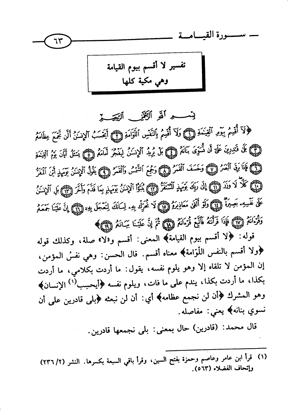 تَفْسِيرِ لَا أُقْسِمُ بِيَوْمِ الْقِيَامَةِ وَهِي مَكِّيَّة كلهَا
