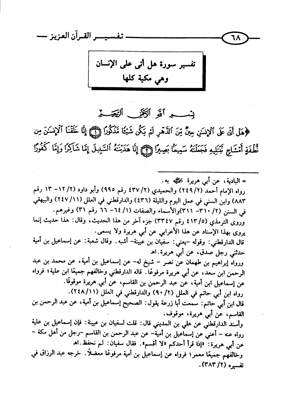 تَفْسِيرُ سُورَةِ هَلْ أَتَى عَلَى الْإِنْسَانِ وَهِيَ مَكِّيَّةٌ كُلُّهَا