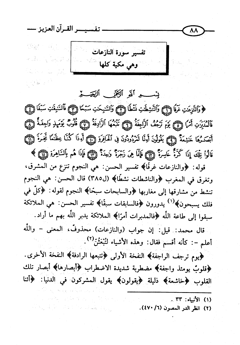 تَفْسِيرُ سُورَةِ النَّازِعَاتِ وَهِيَ مَكِّيَّةٌ كلهَا