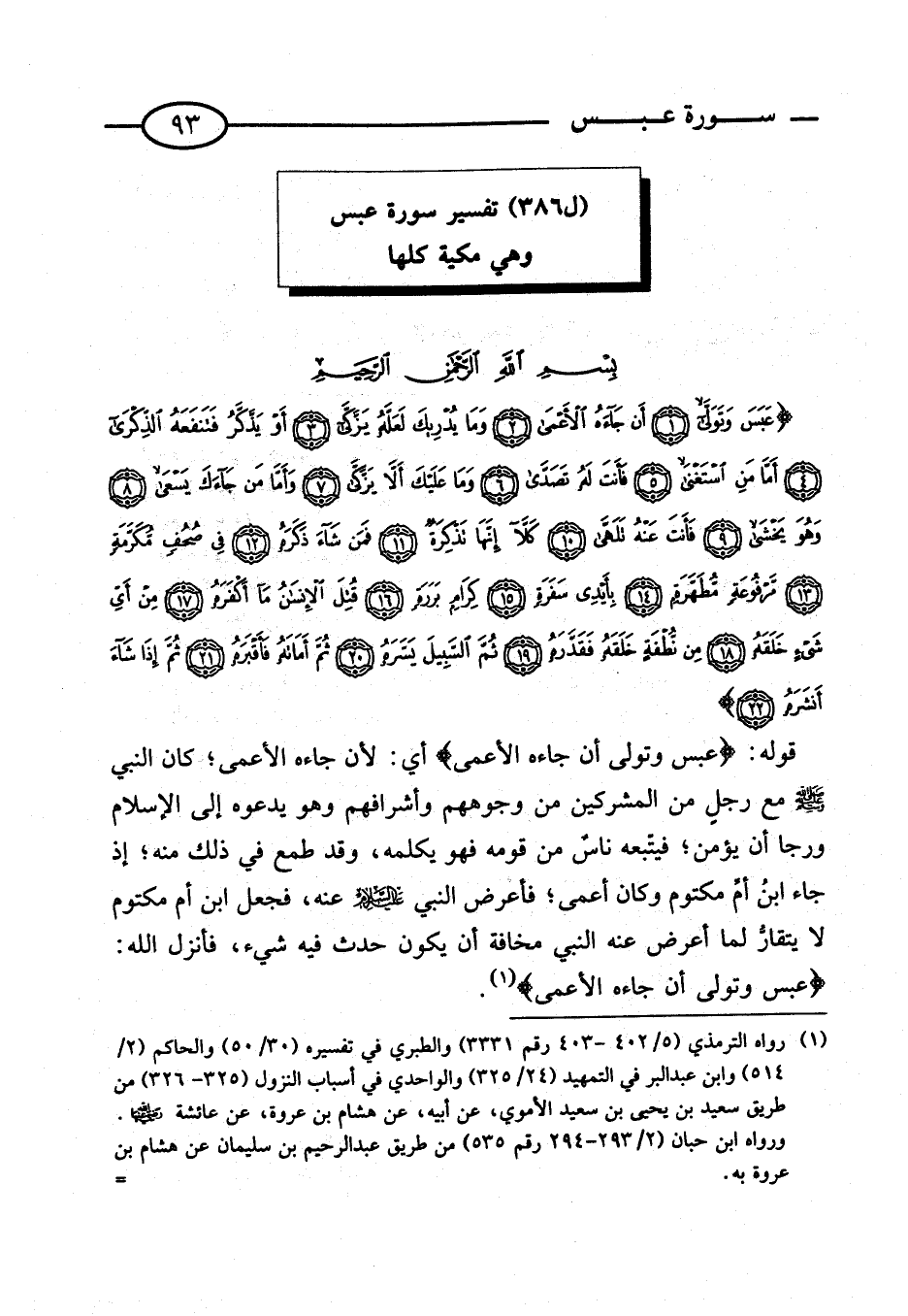 تَفْسِيرُ سُورَةِ عَبَسَ وَهِيَ مَكِّيَّةٌ كلهَا