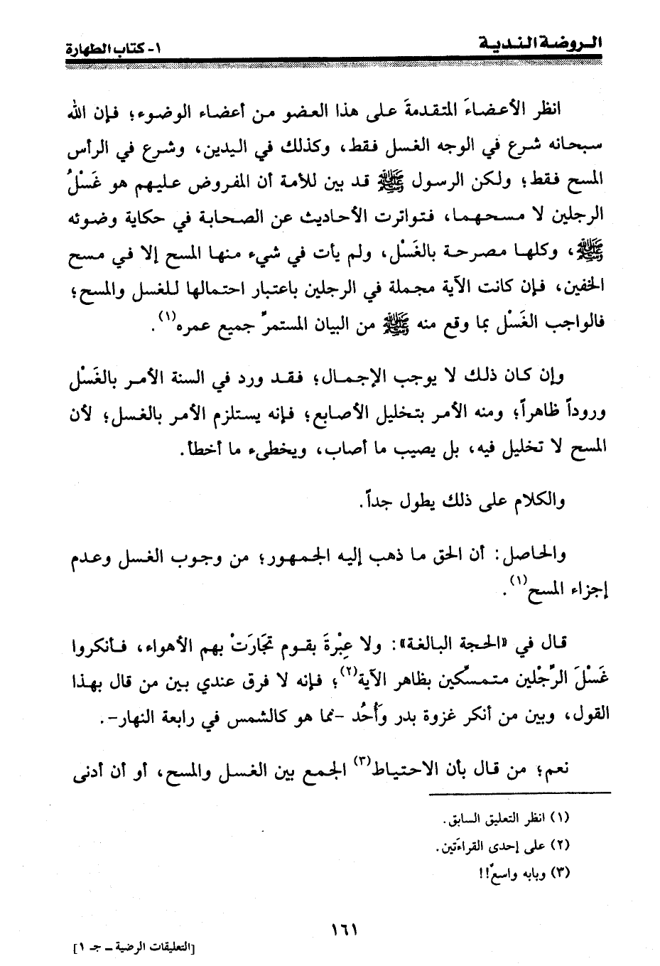قال في " الحجة البالغة ": ولا عبرة بقوم تجارت بهم الأهواء، فأنكروا غسل الرجلين متمسكين بظاهر الآية (¬2) ؛ فإنه لا فرق عندي بين من قال بهذا القول، وبين من أنكر غزوة بدر وأحد - مما هو كالشمس في رابعة النهار -.