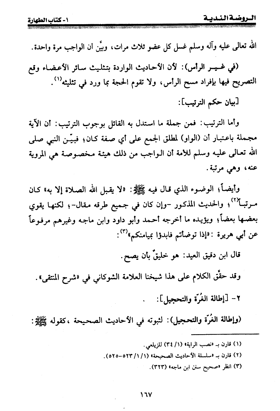 وأيضا؛ الوضوء الذي قال فيه [صلى الله عليه وسلم] : " لا يقبل الله الصلاة إلا به " كان مرتبا (¬2) ؛ والحديث المذكور - وإن كان في جميع طرقه مقال -؛ لكنها يقوي بعضها بعضا؛ ويؤيده ما أخرجه أحمد وأبو داود وابن ماجه وغيرهم مرفوعا عن أبي هريرة: " إذا توضأتم فابدؤا بميامنكم " (¬3) :