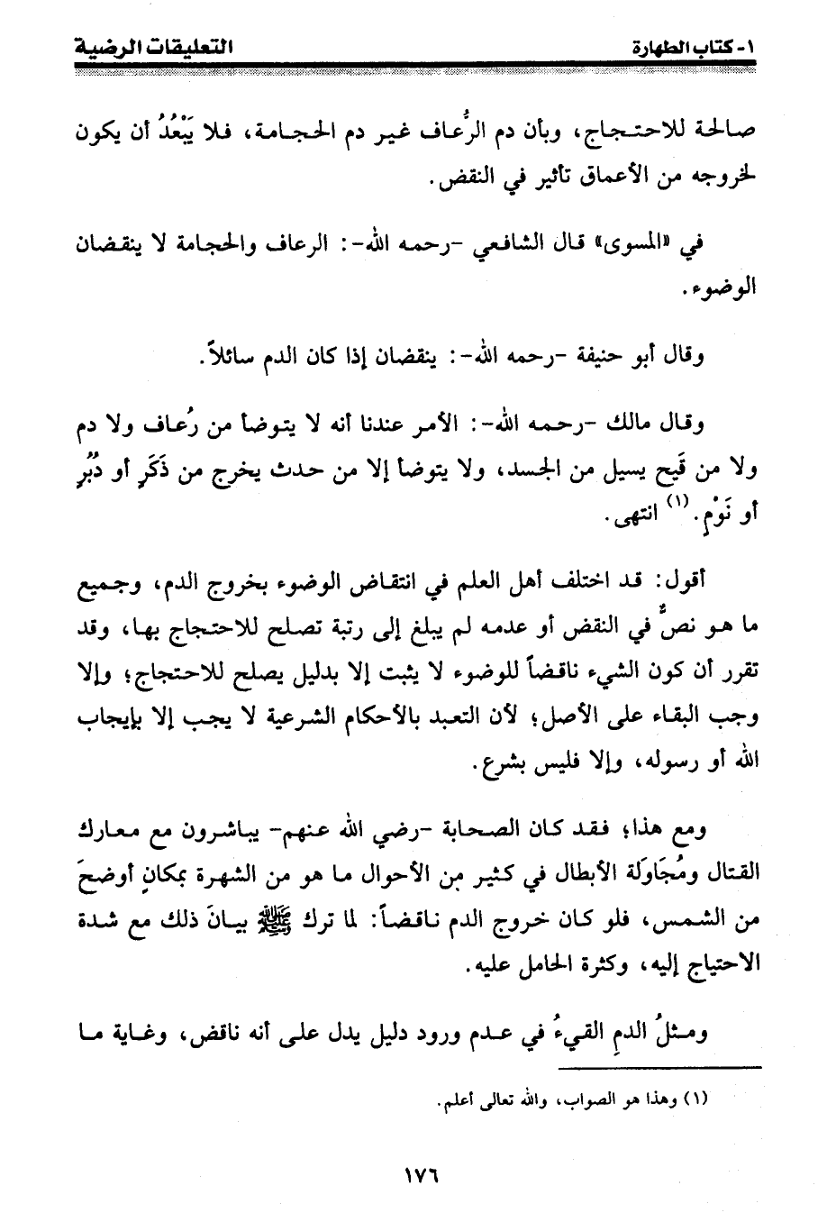 ومع هذا؛ فقد كان الصحابة - رضي الله عنهم - يباشرون مع معارك القتال ومجاولة الأبطال في كثير من الأحوال ما هو من الشهرة بمكان أوضح من الشمس، فلو كان خروج الدم ناقضاً: لما ترك [صلى الله عليه وسلم] بيان ذلك مع شدة الاحتياج إليه، وكثرة الحامل عليه.