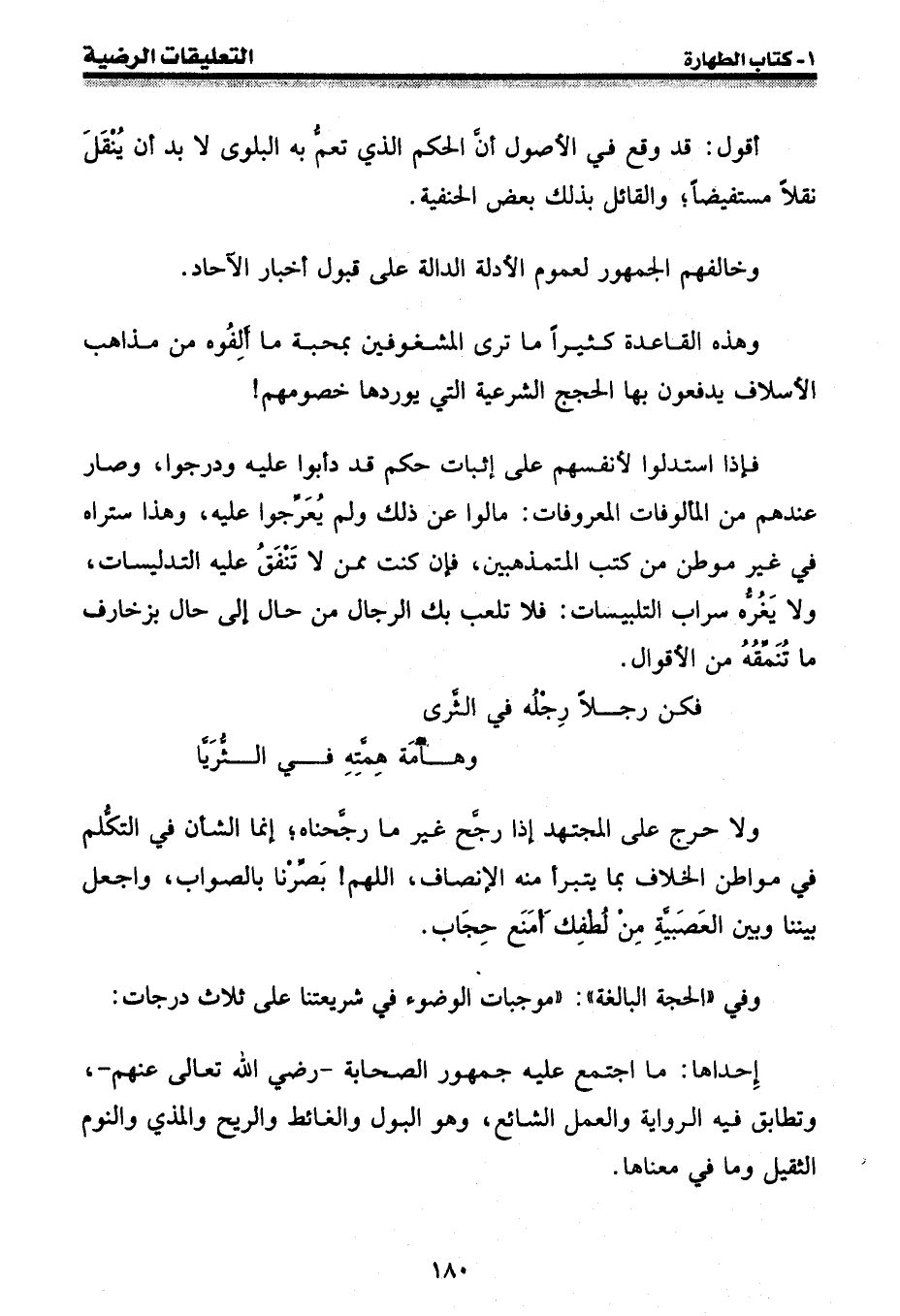 وفي " الحجة البالغة ": " موجبات الوضوء في شريعتنا على ثلاث درجات: