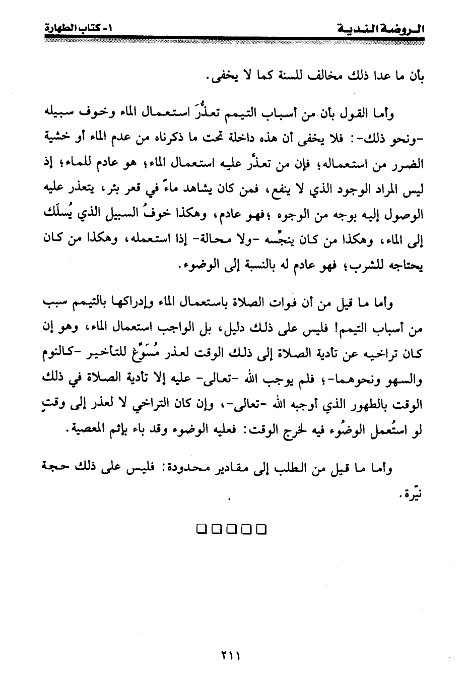 وأما القول بأن من أسباب التيمم تعذر استعمال الماء وخوف سبيله - ونحو ذلك -: فلا يخفى أن هذه داخلة تحت ما ذكرناه من عدم الماء أو خشية الضرر من استعماله؛ فإن من تعذر عليه استعمال الماء؛ هو عادم للماء؛ إذ ليس المراد الوجود الذي لا ينفع، فمن كان يشاهد ماء في قعر بئر، يتعذر عليه الوصول إليه بوجه من الوجوه؛ فهو عادم، وهكذا خوف السبيل الذي يسلك إلى الماء، وهكذا من كان ينجسه - ولا محالة - إذا استعمله، وهكذا من كان يحتاجه للشرب؛ فهو عادم له بالنسبة إلى الوضوء.