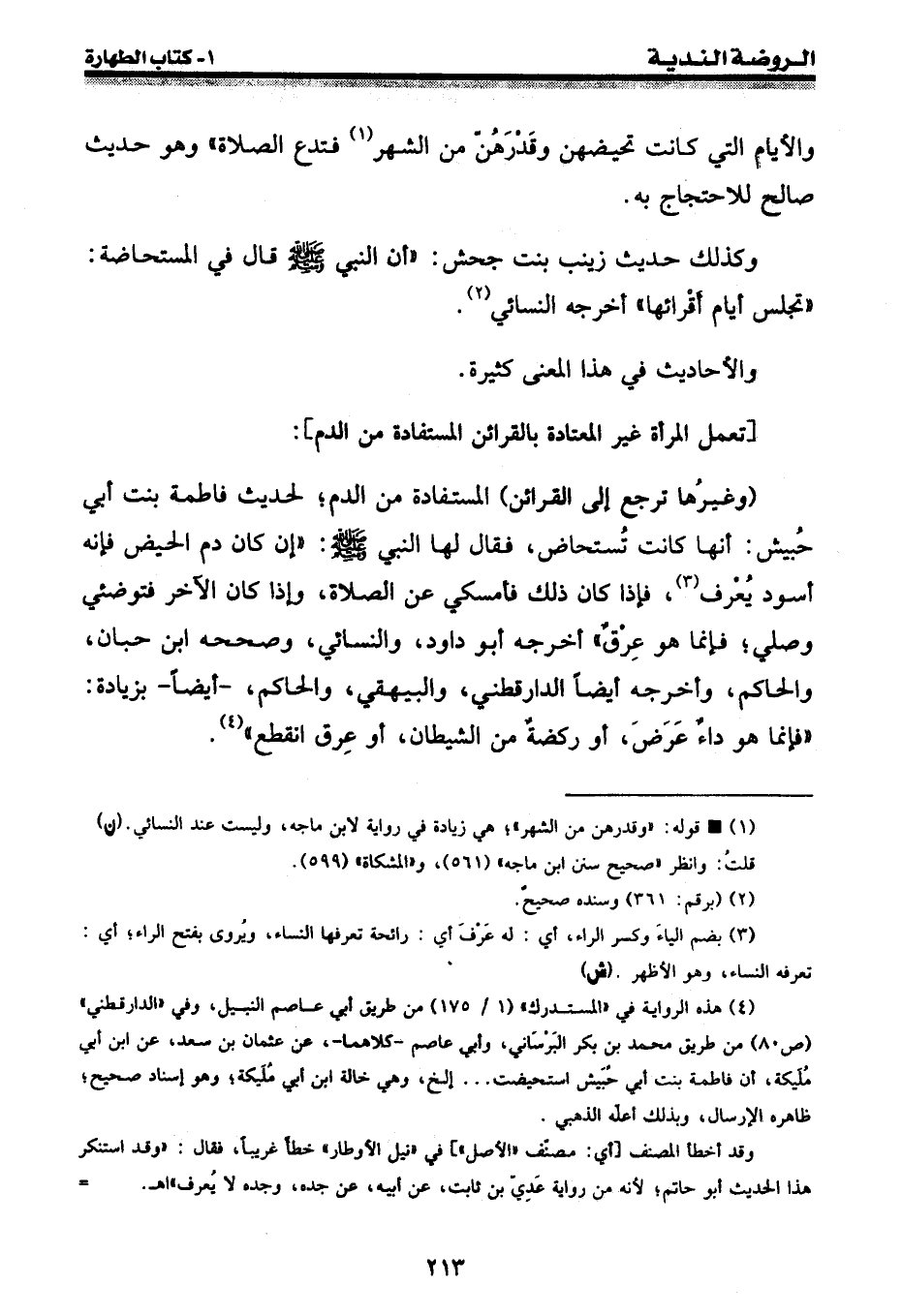 (¬4) هذه الرواية في " المستدرك " (1 / 175) من طريق أبي عاصم النبيل، وفي " الدارقطني " (ص 80) من طريق محمد بن بكر البرساني، وأبي عاصم - كلاهما -، عن عثمان بن سعد، عن ابن أبي مليكة، أن فاطمة بنت أبي حبيش استحيضت ... الخ، وهي خالة ابن أبي مليكة؛ وهو إسناد صحيح؛ ظاهره الإرسال، وبذلك أعله الذهبي.