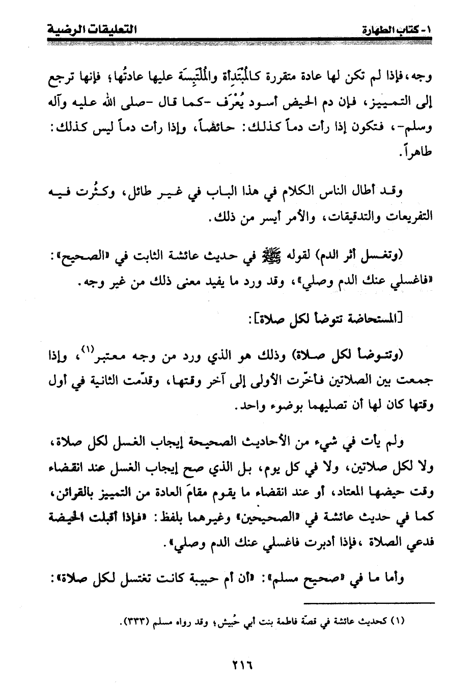 (¬1) كحديث عائشة في قصة فاطمة بنت أبي حبيش؛ وقد رواه مسلم (333) .