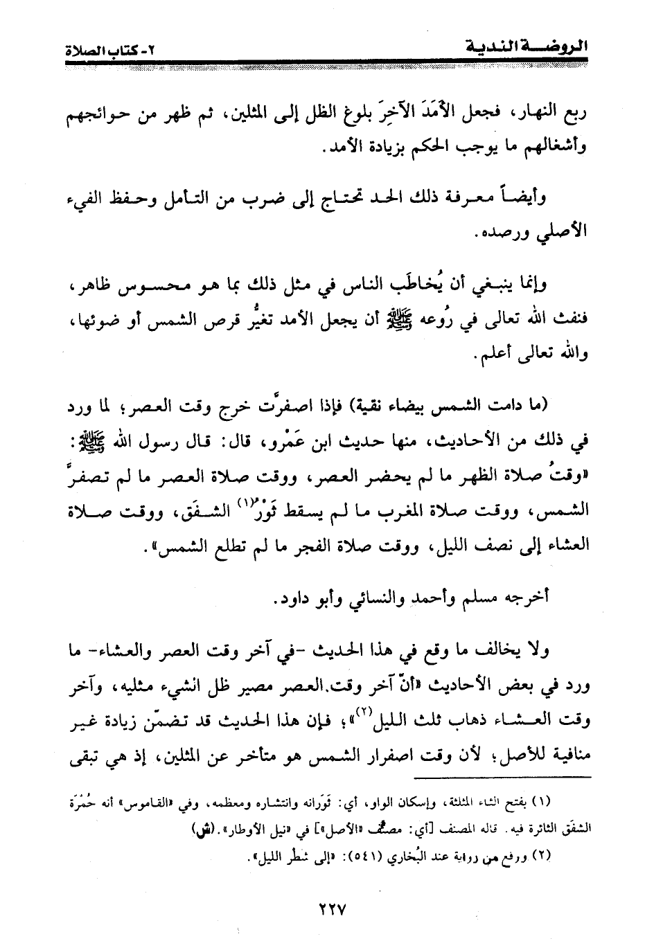 ولا يخالف ما وقع في هذا الحديث - في آخر وقت العصر والعشاء - ما ورد في بعض الأحاديث " أن آخر وقت العصر مصير ظل الشيء مثليه، وآخر وقت العشاء ذهاب ثلث الليل (¬2) "؛ فإن هذا الحديث قد تضمن زيادة غير منافية للأصل؛ لأن وقت اصفرار الشمس هو متأخر عن المثلين، إذ هي تبقى