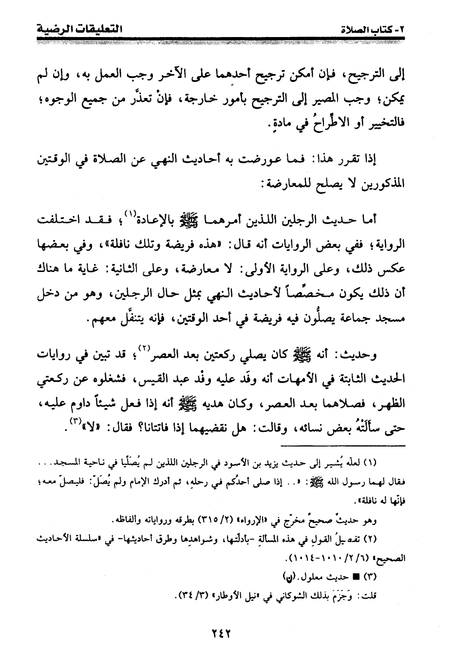 أما حديث الرجلين اللذين أمرهما [صلى الله عليه وسلم] بالإعادة (¬1) ؛ فقد اختلفت الرواية؛ ففي بعض الروايات أنه قال: " هذه فريضة وتلك نافلة "، وفي بعضها عكس ذلك، وعلى الرواية الأولى: لا معارضة، وعلى الثانية: غاية ما هناك أن ذلك يكون مخصصا لأحاديث النهي بمثل حال الرجلين، وهو من دخل مسجد جماعة يصلون فيه فريضة في أحد الوقتين، فإنه يتنفل معهم.