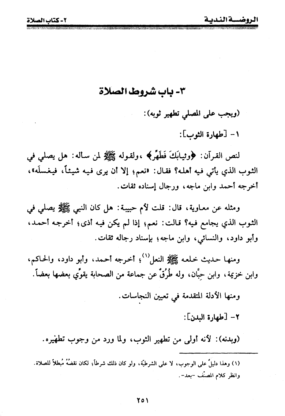 (¬1) وهذا دليل على الوجوب، لا على الشرطية، ولو كان ذلك شرطاً؛ لكان نقضه مبطلاً للصلاة.