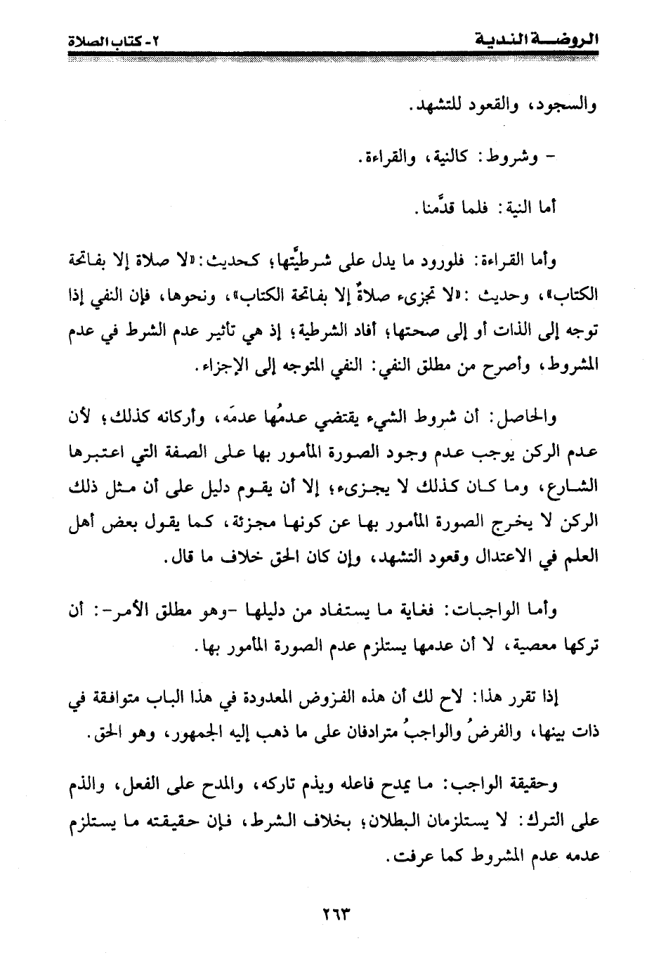 وأما القراءة: فلورود ما يدل على شرطيتها؛ كحديث: " لا صلاة إلا بفاتحة الكتاب "، وحديث: " لا تجزئ صلاة إلا بفاتحة الكتاب "، ونحوها، فإن النفي إذا توجه إلى الذات أو إلى صحتها؛ أفاد الشرطية؛ إذ هي تأثير عدم الشرط في عدم المشروط، وأصرح من مطلق النفي: النفي المتوجه إلى الإجزاء.