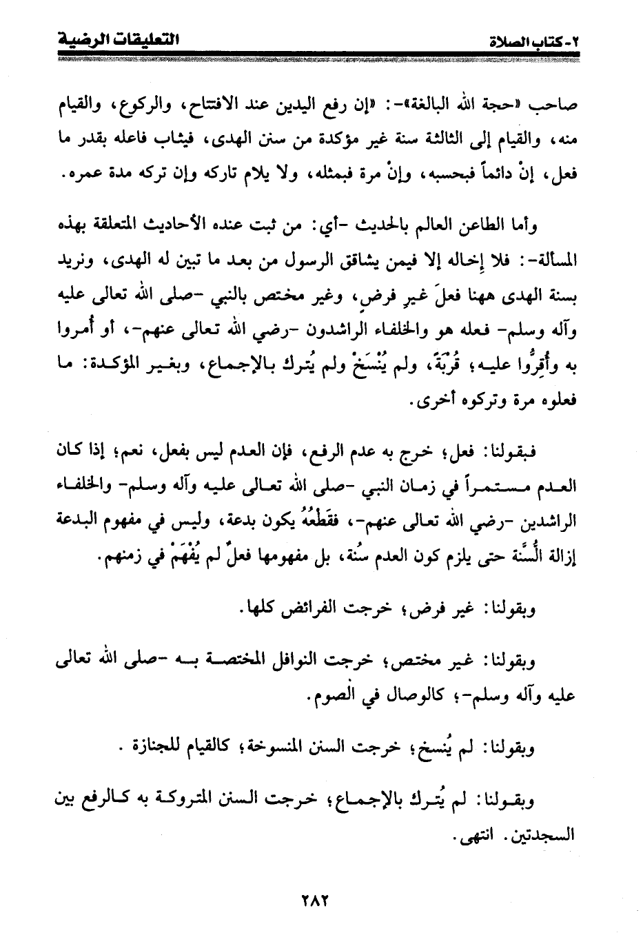 صاحب " حجة الله البالغة " -: " إن رفع اليدين عند الافتتاح، والركوع، والقيام منه، والقيام إلى الثالثة سنة غير مؤكدة من سنن الهدى، فيثاب فاعله بقدر ما فعل، إن دائما فبحسبه، وإن مرة فبمثله، ولا يلام تاركه وإن تركه مدة عمره.