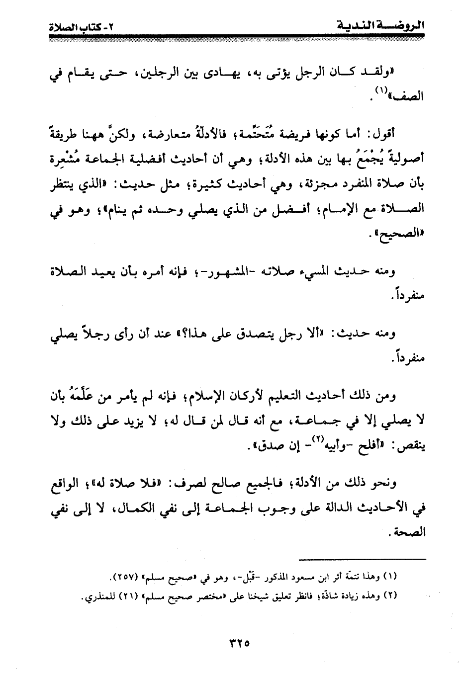 ونحو ذلك من الأدلة؛ فالجميع صالح لصرف: " فلا صلاة له "؛ الواقع في الأحاديث الدالة على وجوب الجماعة إلى نفي الكمال، لا إلى نفي الصحة.
