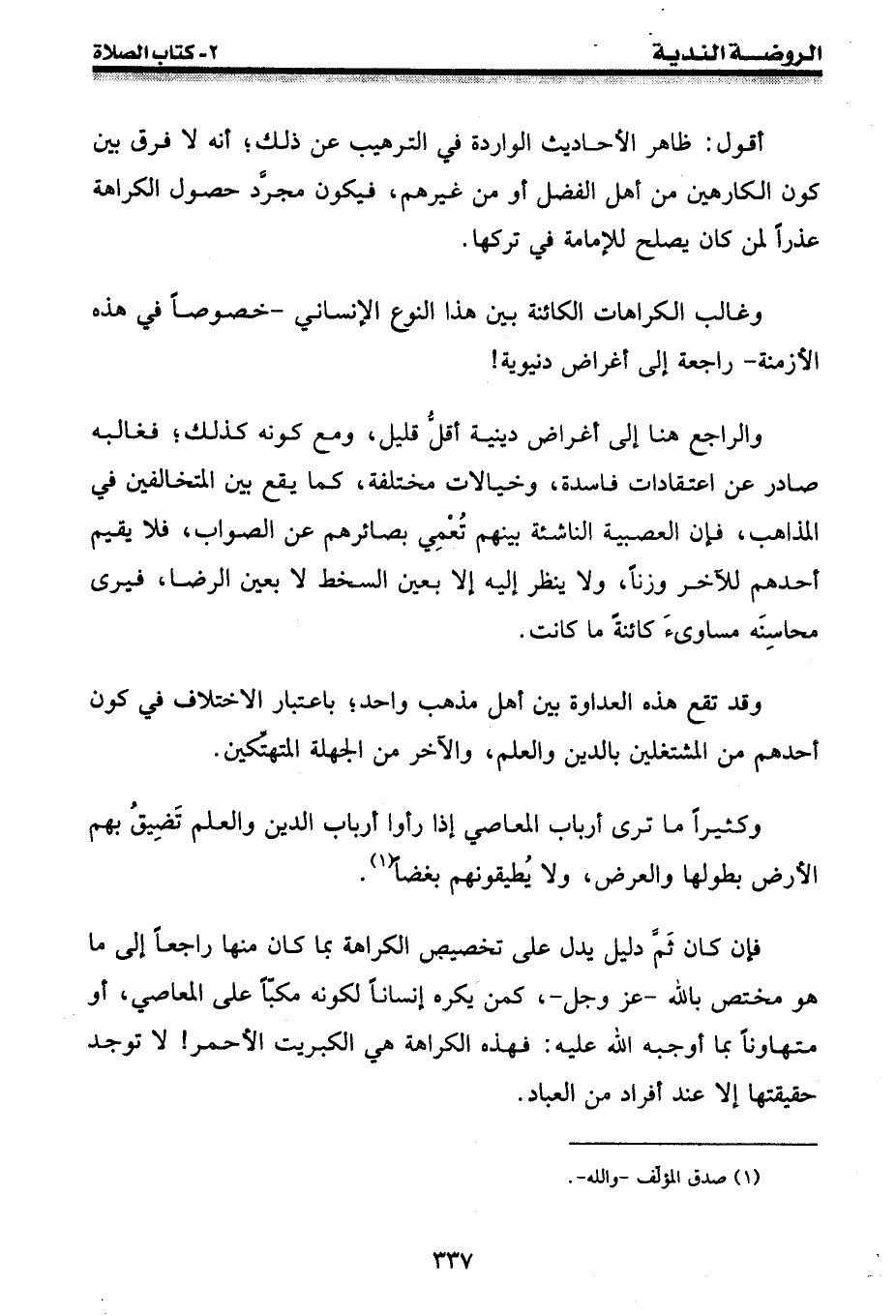 وقد تقع هذه العداوة بين أهل مذهب واحد؛ باعتبار الاختلاف في كون أحدهم من المشتغلين بالدين والعلم، والآخر من الجهلة المتهتكين.
