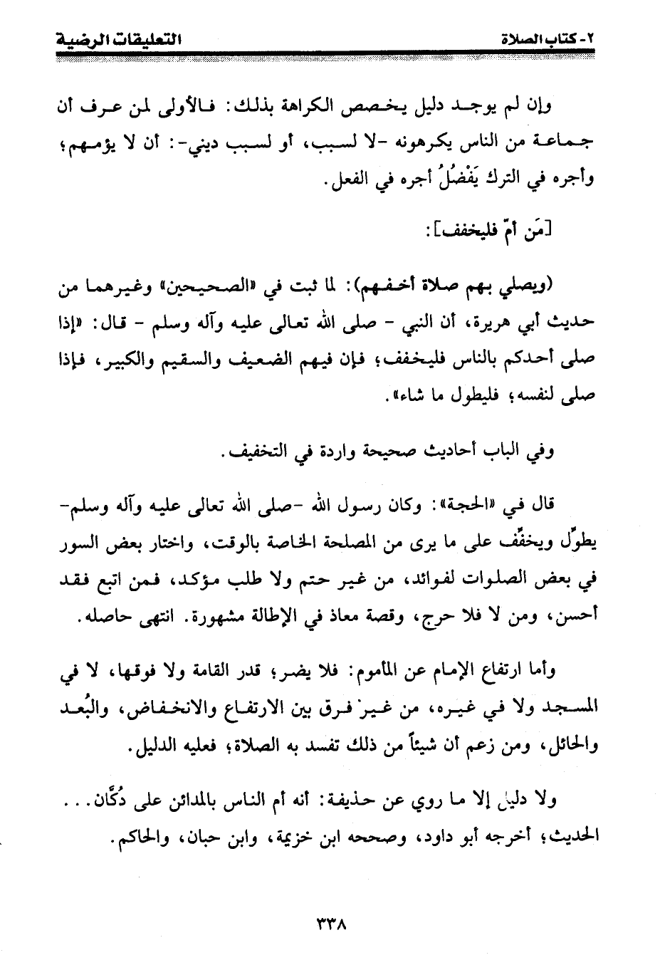 وفي الباب أحاديث صحيحة واردة في التخفيف.