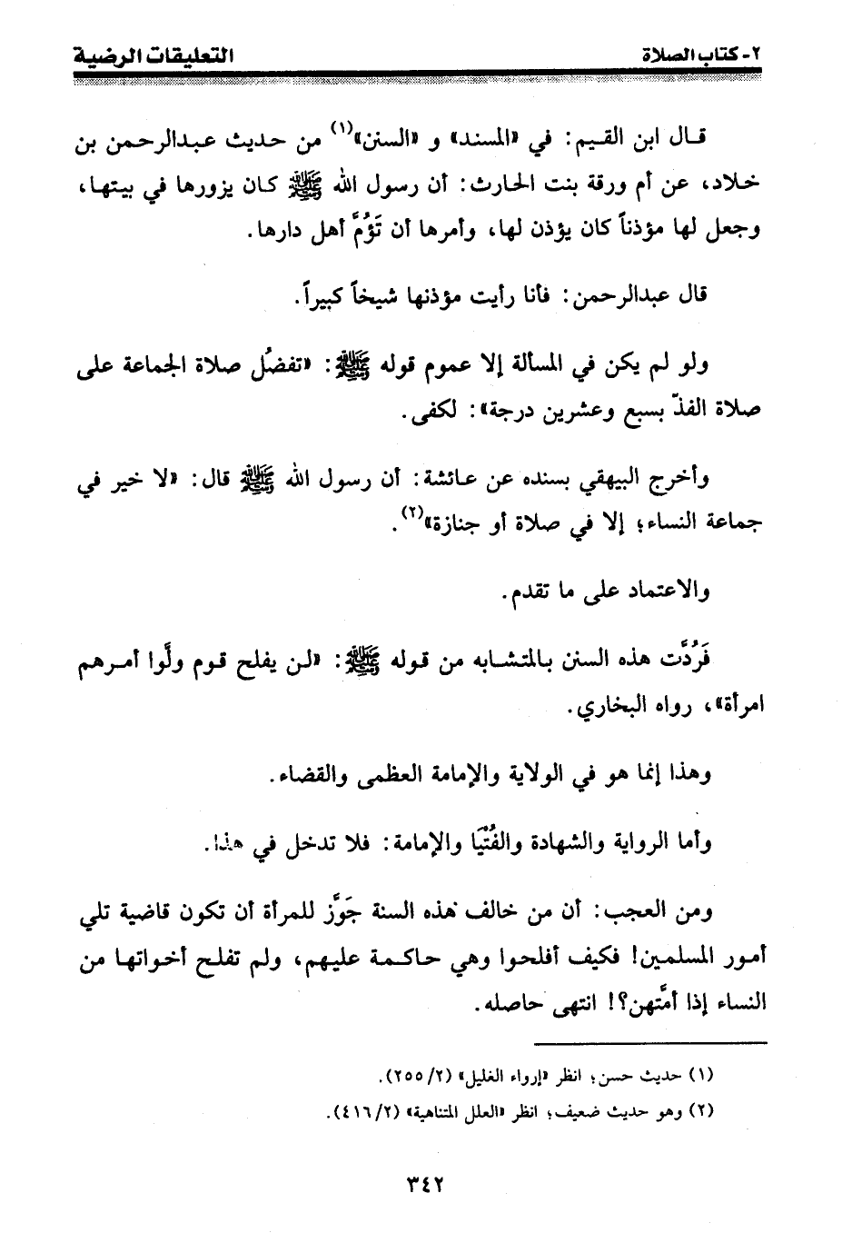 فرُدّت هذه السنن بالمتشابه من قوله [صلى الله عليه وسلم] : " لن يفلح قوم ولوا أمرهم امرأة "، رواه البخاري.