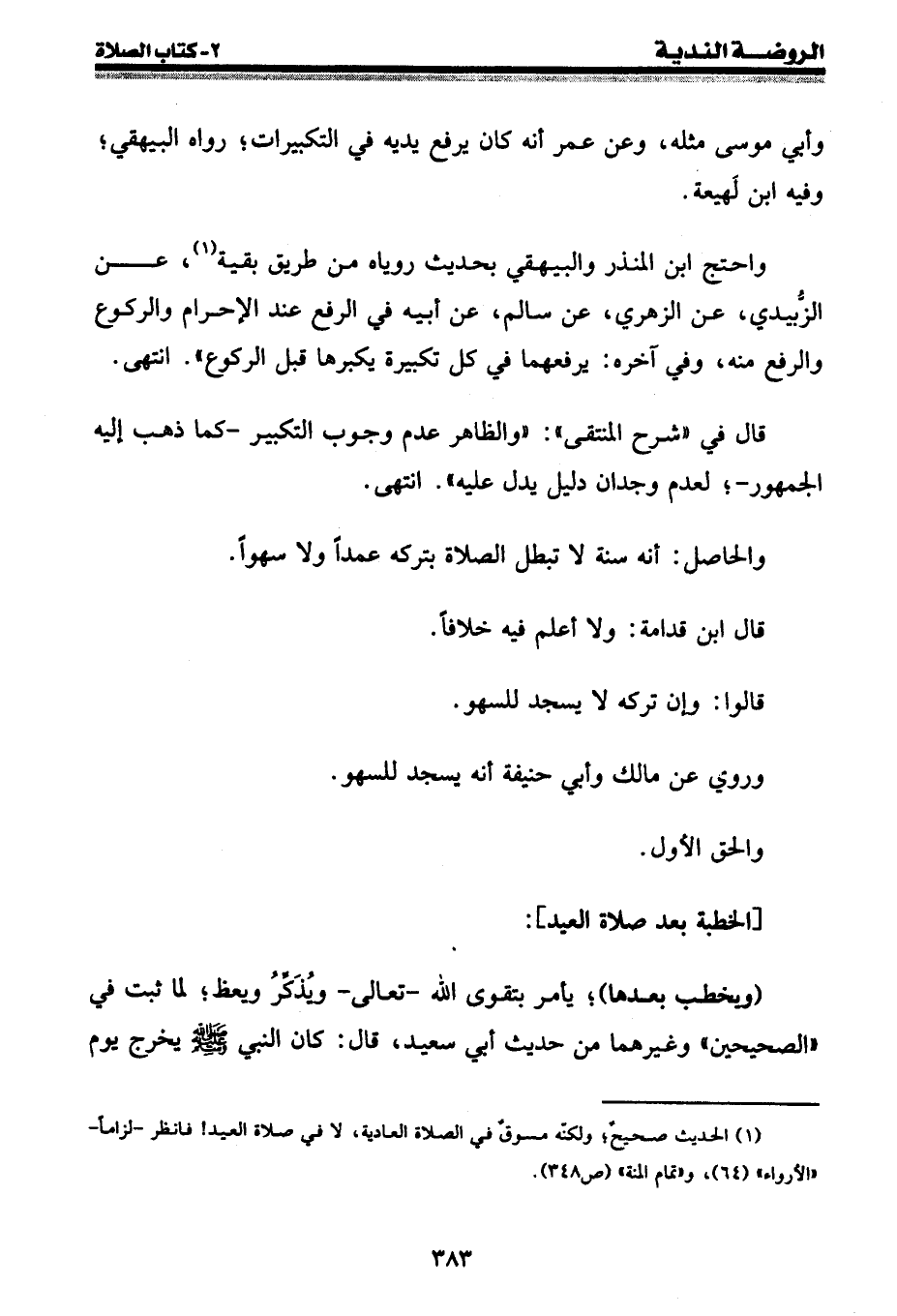 (¬1) الحديث صحيح؛ ولكنه مسوق في الصلاة العادية، لا في صلاة العيد! فانظر - لزاماً - " الأرواء " (64) ، و " تمام المنة " (ص 348) .