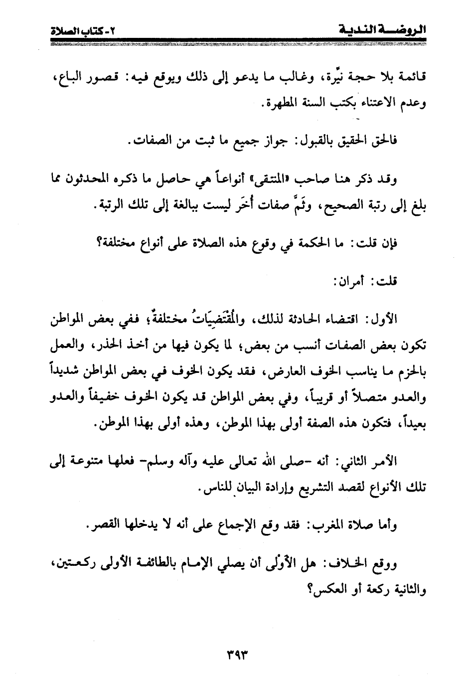 فإن قلت: ما الحكمة في وقوع هذه الصلاة على أنواع مختلفة؟