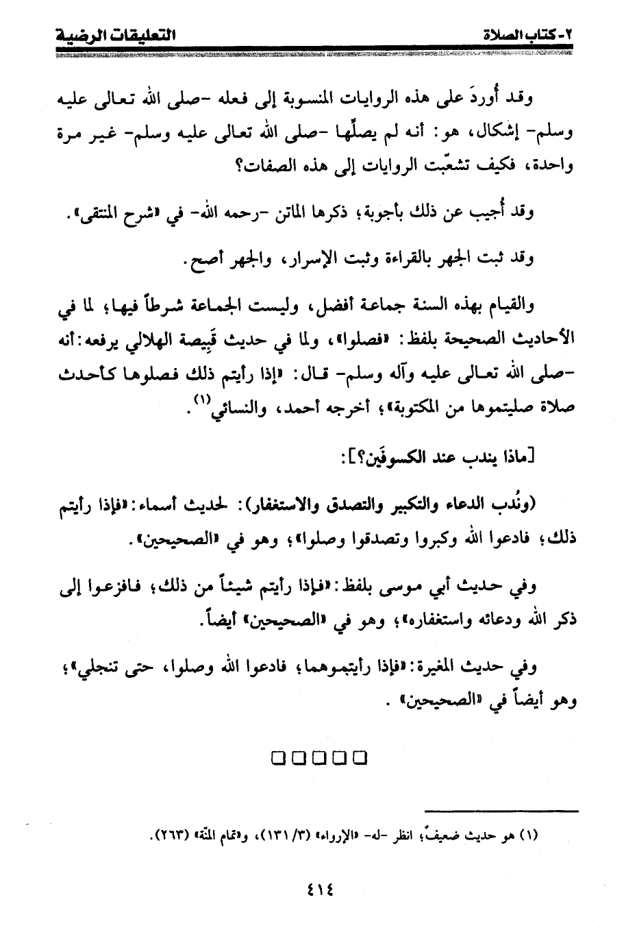 والقيام بهذه السنة جماعة أفضل، وليست الجماعة شرطا فيها؛ لما في الأحاديث الصحيحة بلفظ: " فصلوا "، ولما في حديث قبيصة الهلالي يرفعه: أنه -[صلى الله عليه وسلم]- قال: " إذا رأيتم ذلك فصلوها كأحدث صلاة صليتموها من المكتوبة "؛ أخرجه أحمد، والنسائي (¬1) .