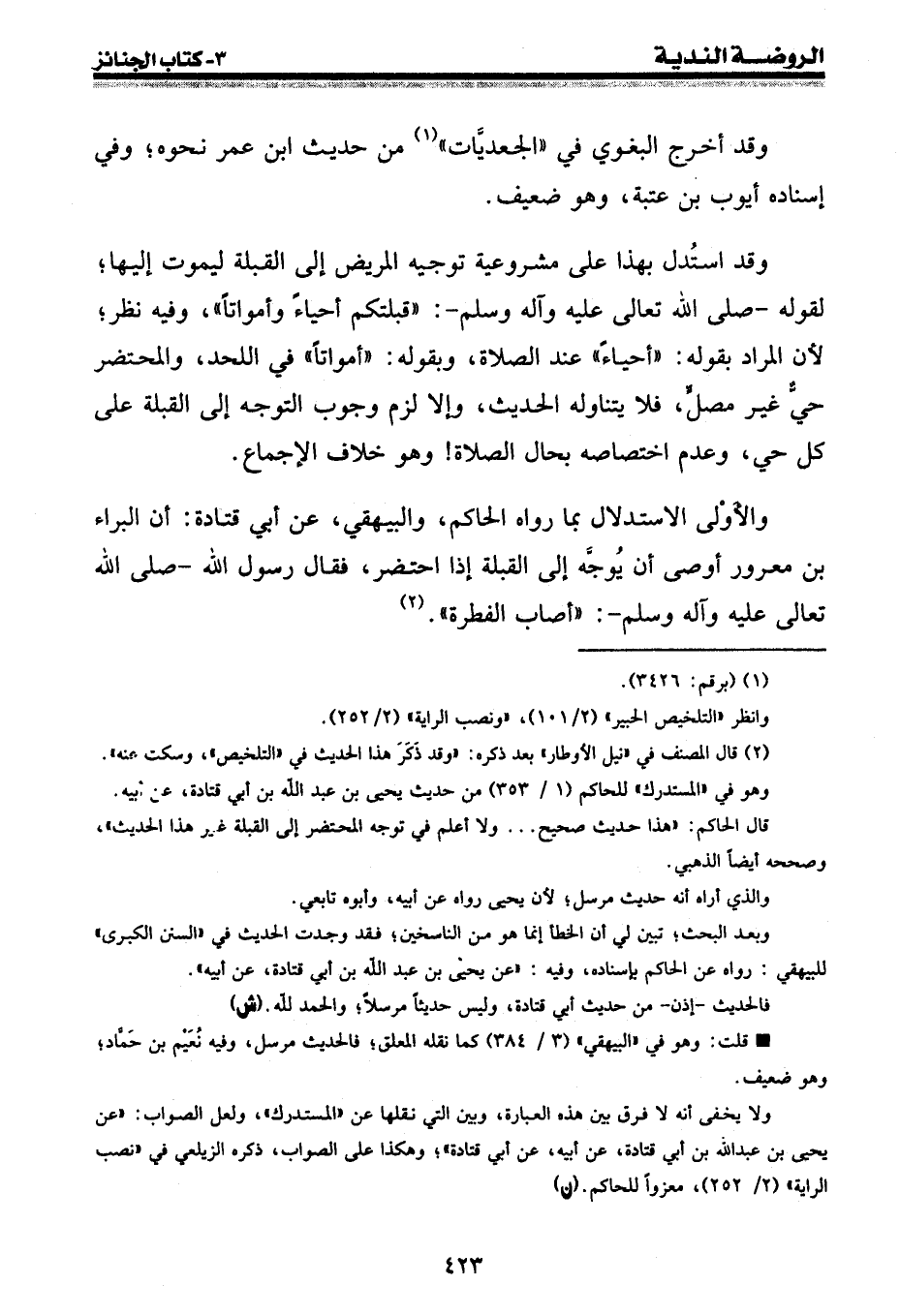 والأوْلى الاستدلال بما رواه الحاكم، والبيهقي، عن أبي قتادة: أن البراء بن معرور أوصى أن يُوجَّه إلى القبلة إذا احتضر، فقال رسول الله -[صلى الله عليه وسلم]-: " أصاب الفطرة ". (¬2)