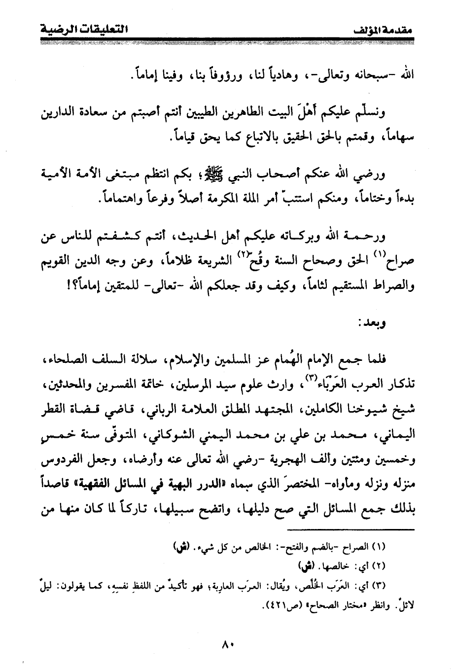 كتاب الدرر البهية والروضة الندية والتعليقات الرضية (اسم الجزء: 1)