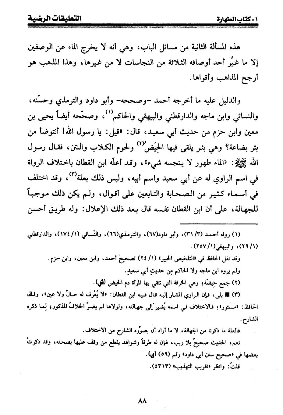 (¬1) رواه أحمد (3 / 31) ، وأبو داود (67) ، والترمذي (66) ، والنسائي (1 / 174) ، والدارقطني (1 / 29) ، والبيهقي (1 / 257) .