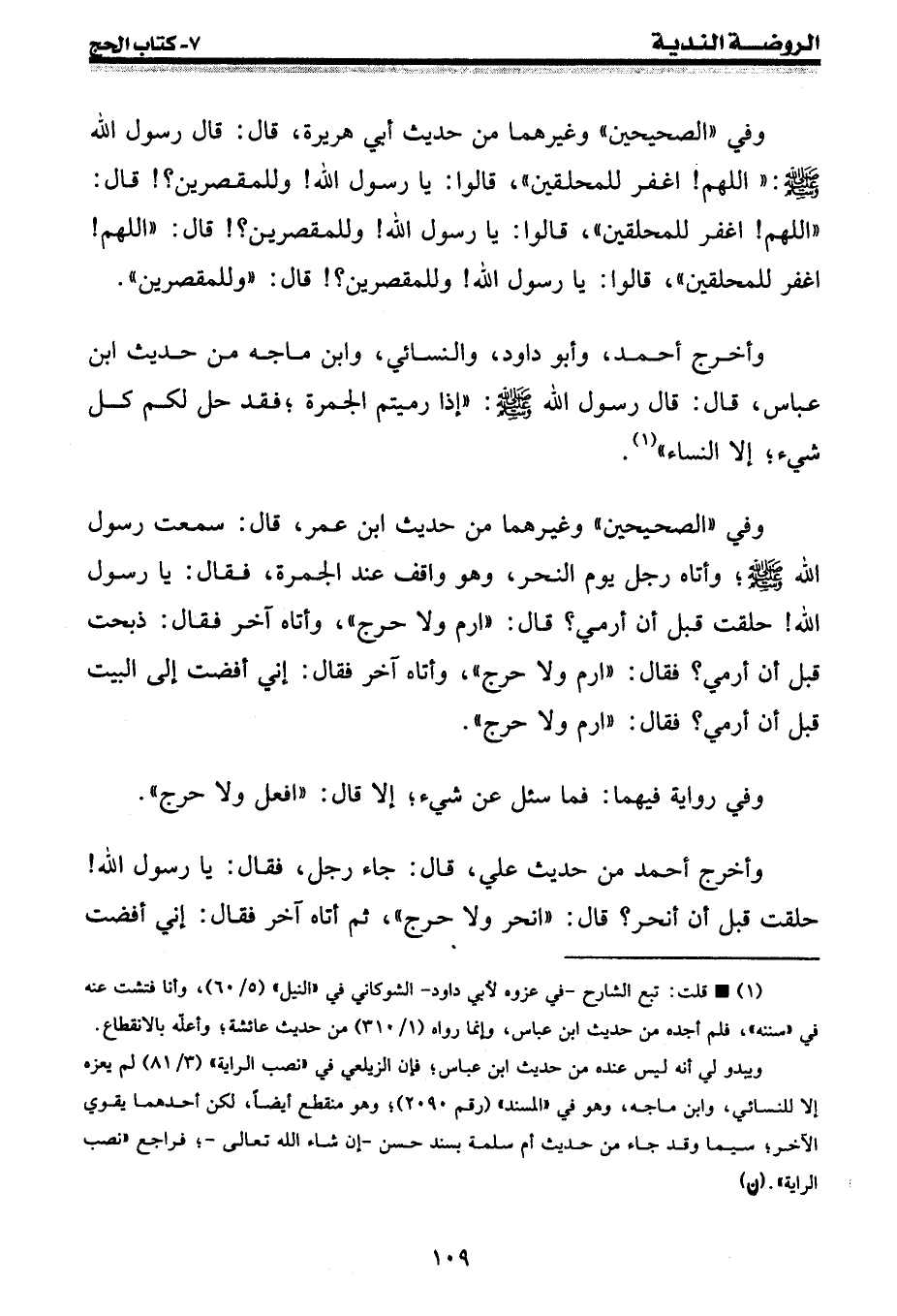 وأخرج أحمد من حديث علي، قال: جاء رجل، فقال: يا رسول الله! حلقت قبل أن أنحر؟ قال: " انحر ولا حرج "، ثم أتاه آخر فقال: إني أفضت