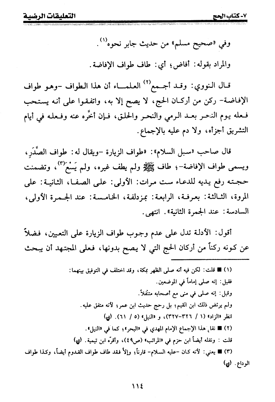قال صاحب " سبل السلام ": " طواف الزيارة - ويقال له: طواف الصدر، ويسمى طواف الإفاضة -؛ طاف صلى الله عليه وسلم ولم يطف غيره، ولم يسع (¬3) ، وتضمنت حجته رفع يديه للدعاء ست مرات: الأولى: على الصفا، الثانية: على المروة، الثالثة: بعرفة، الرابعة: بمزدلفة، الخامسة: عند الجمرة الأولى، السادسة: عند الجمرة الثانية ". انتهى.