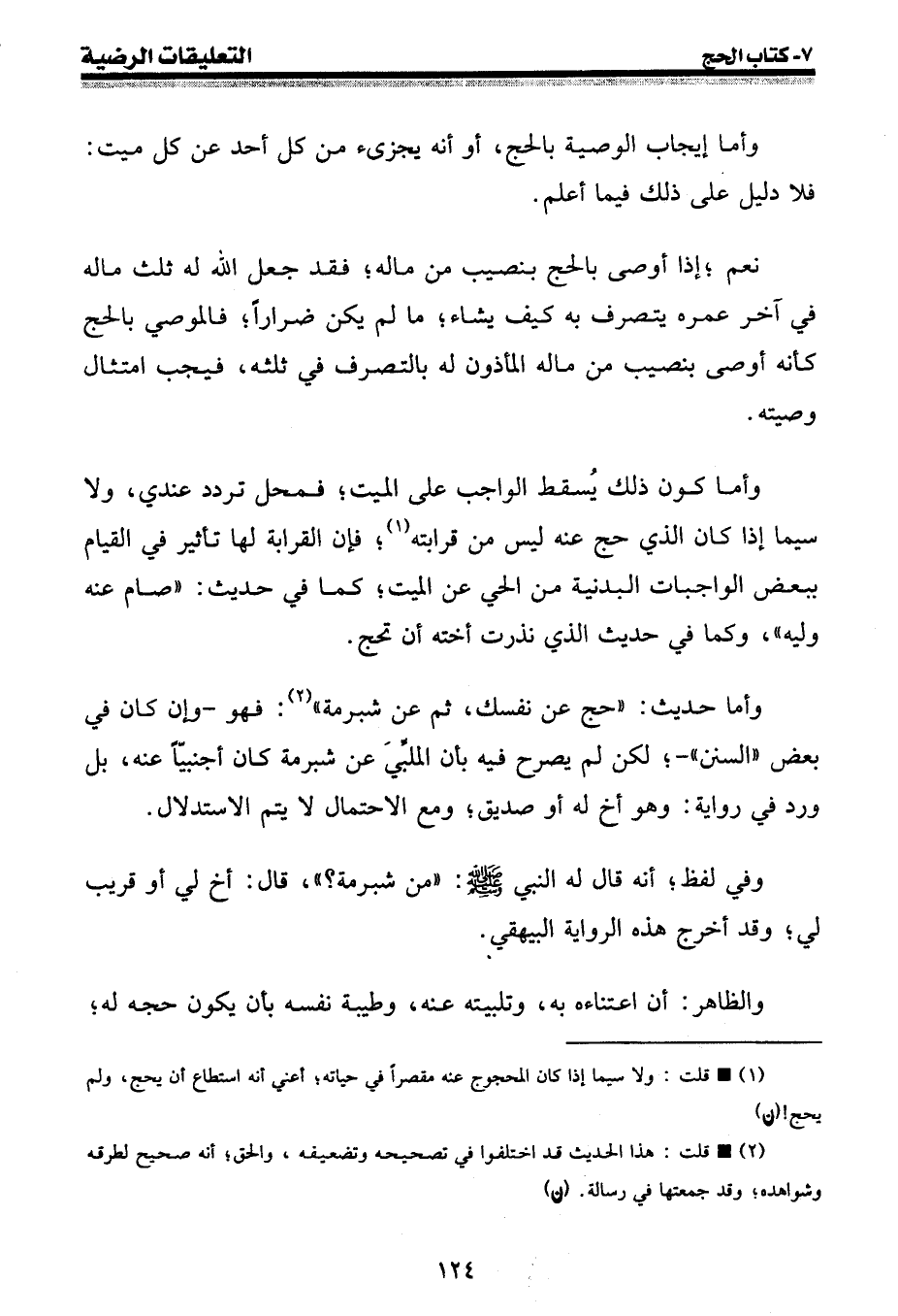 (¬1) • قلت: ولا سيما إذا كان المحجوج عنه مقصرا في حياته؛ أعني أنه استطاع أن يحج، ولم يحج. (ن)